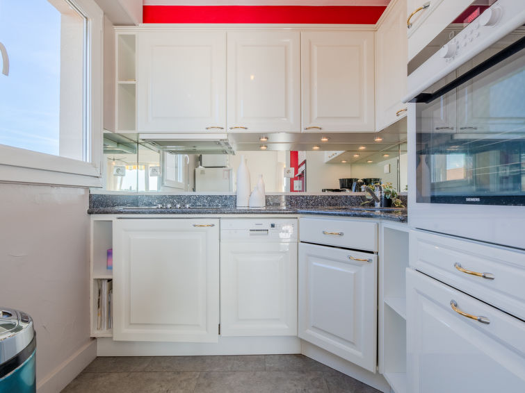 Beautiful residence "Le Riviera", 4 storeys. In the centre of Sainte Maxime, in the heart of the city, 150 m from the sea, 150 m from the beach. For shared use: garden, courtyard, swimming pool angular fenced (seasonal availability: 01.Jun. - 30.Sep.). In the complex: lift. Parking. Grocery 150 m, supermarket, shopping centre, restaurant 200 m, bakery 100 m, bicycle rental 150 m, 3 minute walk to the centre, bus stop 300 m, railway station "Saint-Raphael TGV" 35 km, sandy beach "Centre-Ville" 150 m, thermal baths "Thalasso les Issambres" 7 km. Sports harbour 600 m, golf course (18 hole) 5 km, tennis 2 km. Nearby attractions: Aqualand waterpark 3 km, Azur Park attractions 8 km, Saint-Tropez/Ramatuelle 14 km, Port-Grimaud 7 km, Navette / shuttle boat St-Tropez 15min 800 m. Hiking paths: Massif des Maures 5 km, Massif de l'Esterel 25 km.2-room apartment 50 m2 on 4th floor, south-west facing position. Beautiful and modern furnishings: living/dining room, window onto the courtyard with 1 sofabed (140 cm, length 190 cm), TV (flat screen), electric shutters. Exit to the balcony. 1 room with Dressing room south facing position with 1 double bed (160 cm, length 200 cm), electric shutters. Kitchenette (oven, dishwasher, 4 induction hot plates, toaster, kettle, microwave, freezer, electric coffee machine). Shower, sep. WC. Air-conditioning. Balcony, south facing position and west facing position. Balcony furniture. Side view of the sea. Facilities: washing machine, dryer, iron. Internet (WiFi, extra). Parking space n 127 (roofed). Please note: non-smokers only. Smoke alarm. Accommodation not suitable for PRM People with reduced mobility. Offer by a private individual according to Art. 155, IV of CGI. 83115005035DZ