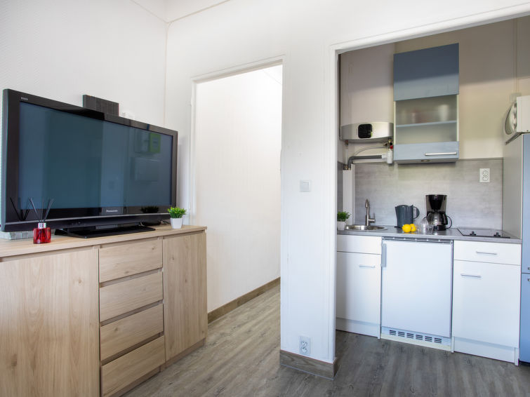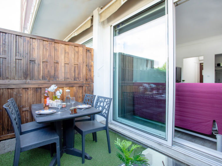 Residence "Le Tremblay", 5 storeys. In the district of hippodrome Côte d'Azur, in a busy position in the residential district, 150 m from the sea, 150 m from the beach, west facing position. In the house: lift. Grocery 700 m, supermarket, shopping centre 4 km, restaurant 20 m, bakery, bus stop 100 m, railway station "CENTRE CAGNES" 1.2 km, shingle beach 200 m. Sports harbour 3.5 km, marina 3.5 km, sailing school 3.5 km. Nearby attractions: HIPPODROME COTE D'AZUR 150 m."Le Tremblay 2", 1-room studio 22 m2, on the ground floor, west facing position. Simple furnishings: living/dining room with 1 sofabed (140 cm, length 190 cm), TV (flat screen), air conditioning. Exit to the terrace. Kitchenette (2 hot plates, kettle, microwave, electric coffee machine). Shower/WC. Heating. Small terrace 8 m2. Facilities: iron, hair dryer. Internet (WiFi, free). Please note: smoke alarm. Offer by a private individual according to Art. 155, IV of CGI.