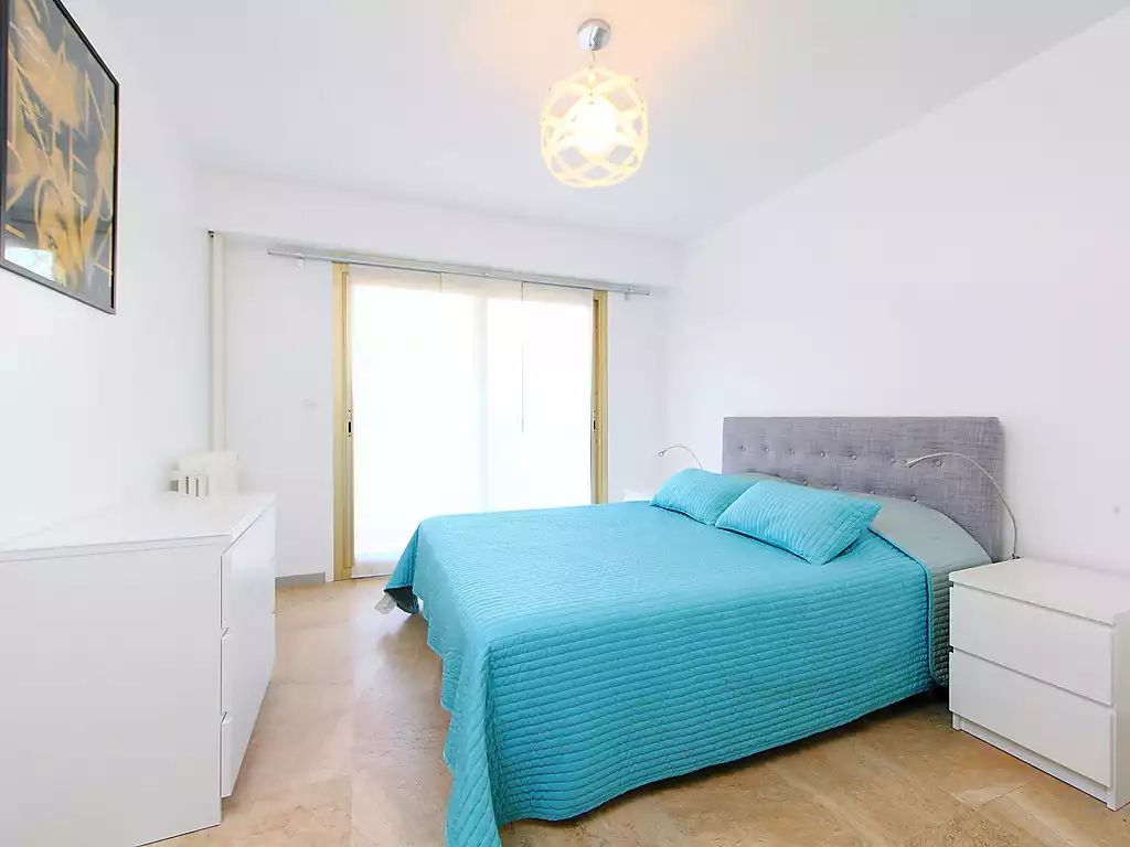 Beautiful residence "Lerins", 6 storeys. In the district of Palm Beach, 50 m from the sea, 50 m from the beach. In the house: lift. Grocery 100 m, restaurant 50 m, bus stop 100 m. Sports harbour 300 m. Nearby attractions: Marineland 13 km, Palais des Festivals 2.5 km.4-room apartment 92 m2 on 1st floor. Fully renovated in 2015, comfortable and modern furnishings: living/dining room with satellite TV, flat screen and air conditioning. Exit to the terrace. 1 room with 1 french bed (160 cm), air conditioning. Exit to the terrace. 1 room with 1 french bed (160 cm), air conditioning. Exit to the terrace. 1 small room with 1 bed (120 cm), air conditioning. Large, open kitchen (oven, dishwasher, 3 induction hot plates, microwave, electric coffee machine). Bath/WC, shower/WC. Forced-air heating. Terrace 12 m2, terrace 15 m2. Terrace furniture. Very beautiful view of the sea. Facilities: washing machine, dryer. Internet (WiFi, free). Please note: smoke alarm. 06029003778AK