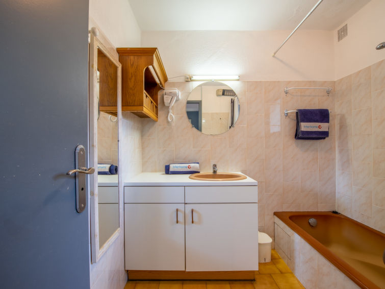 2-family house "Les Arbousiers". On the outskirts, 1.7 km from the centre of Cavalaire, on a slope, 1.2 km from the sea, 1.2 km from the beach. For shared use: property 800 m2, parking on the premises. Shop 1.2 km, supermarket 1.6 km, shopping centre 10 km, restaurant 1.2 km, bakery 1.2 km, bus stop "place du parc" 900 m, sandy beach "Plage du Centre" 1.2 km. Sports harbour 1.2 km, minigolf 12 km. Nearby attractions: Azur Park, Paint Ball 12 km, Bowling Port Grimaud 13 km, Saint Tropez 17 km, Sainte Maxime 24 km. Hiking paths: Sentier du Dattier 4 km, Sentier du Littoral 7 km, Toulon 60 km. The owner does not accept any groups."Les Arbousiers", 4-room apartment 75 m2, on the ground floor. Beautiful furnishings: living/dining room with dining table, TV and air conditioning. Exit to the terrace. 1 room with 1 french bed (140 cm, length 190 cm), air conditioning. 2 rooms, each room with 2 beds (90 cm, length 190 cm), air conditioning. Kitchen (oven, dishwasher, 4 gas rings, toaster, kettle, microwave, freezer, electric coffee machine). Bathroom, sep. WC. Electric heating. Terrace 15 m2, south facing position and, east facing position, garden 800 m2. Terrace furniture, deck chairs (4). Beautiful view of the sea. Facilities: washing machine, iron, hair dryer. Internet (WiFi, free). Parking (fenced 2 cars). Please note: maximum 1 pet/ dog allowed. Smoke alarm.
