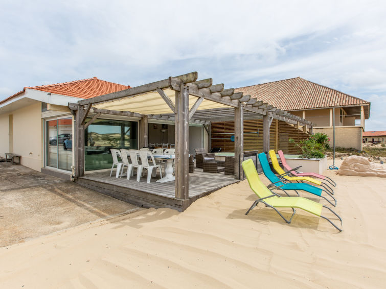 Beautiful semi-detached house "Les Baïnes". 1 km from the centre of Vieux-Boucau, 17 km from the centre of Hossegor, in the residential district, 300 m from the sea, 600 m from the lake, 300 m from the beach. Private: natural state property 100 m2, swimming pool (above ground) (4 x 2 m, depth 130 cm, seasonal availability: 01.Jan. - 31.Dec.) with alarm system. Pergola, terrace (35 m2), garden furniture, parking at the house. Shop 600 m, supermarket 1 km, restaurant 600 m, bus stop "Vx Boucau les Bains-Eglise" 1.2 km, sandy beach "Vieux-Boucau" 300 m, bathing lake "Lac Marin Vieux-Boucau" 600 m. Golf course (18 hole) 10 km."Les Baïnes", 3-room semi-detached house 80 m2. Object suitable for 5 adults. Bright, beautiful furnishings: living/sleeping room with 1 double sofabed (140 cm, length 190 cm), dining table and satellite TV (flat screen). Exit to the terrace. 1 room with 1 french bed (140 cm, length 190 cm). Exit to the garden. 1 room with 1 x 2 bunk beds (140 cm, length 190 cm). Exit to the garden. Open kitchen (oven, dishwasher, 3 induction hot plates, toaster, kettle, microwave, freezer, electric coffee machine) with bar. Shower, sep. WC, double hand-basin. Electric heating. Terrace 35 m2. Terrace furniture, barbecue (portable), deck chairs (3), box-room. View of the sea. Facilities: washing machine, iron, children's high chair, baby cot (extra). Internet (WiFi, extra). Please note: non-smokers only. Smoke alarm. Offer by a private individual according to Art. 155, IV of CGI. 40328000691SB