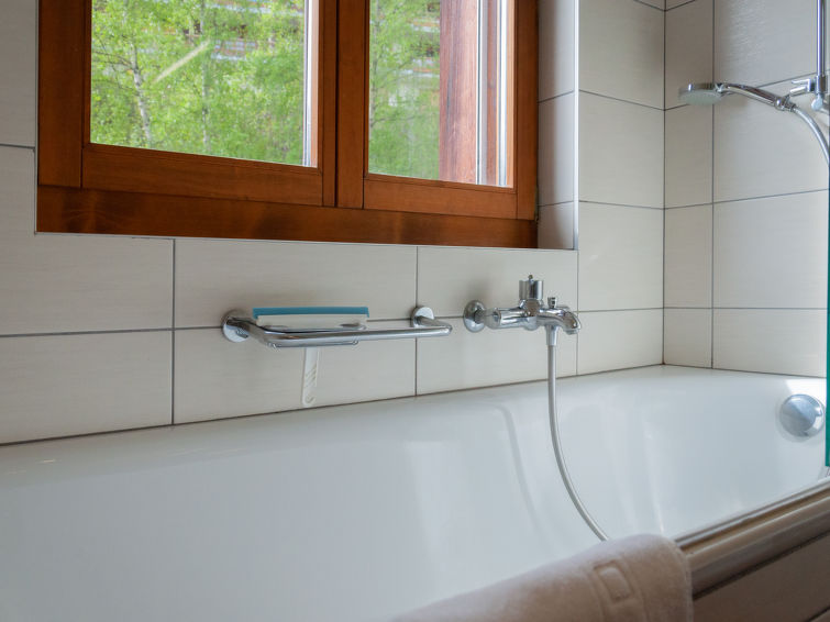 Beautiful residence "Les Cimes Blanches A et B", 5 storeys, built in 2008. In the resort, 300 m from the centre, in a quiet position. In the house: lift, central heating system. Supermarket 800 m, restaurant 150 m, bus stop "Haute-Nendaz, station/poste" 600 m, railway station "Sion" 16 km, outdoor swimming pool 750 m. Golf course (18 hole) 16 km, tennis 700 m, skisport facilities 1.2 km, ski bus stop 150 m."Les Cimes Blanches B 401", 4-room apartment 100 m2 on 4th floor. Comfortable and tasteful furnishings: living/dining room with open-hearth fireplace and cable TV. Exit to the balcony. 1 room with 2 beds (90 cm, length 190 cm). 2 rooms, each room with 1 french bed (180 cm, length 200 cm). Exit to the balcony. Open kitchen (oven, dishwasher, 4 ceramic glass hob hotplates, toaster, kettle, freezer, electric coffee machine, Capsules for coffee machine (Nespresso) extra, raclette grill, fondue Set (cheese)). Bath/WC, shower/WC. 3 balconies, north facing position and south facing position, east facing position. Balcony furniture. Beautiful view of the mountains and the resort. Facilities: washing machine, dryer, children's high chair, baby cot, hair dryer. Internet (WiFi, free). Garage, height 200 cm, width 230 cm. Please note: non-smoking house.