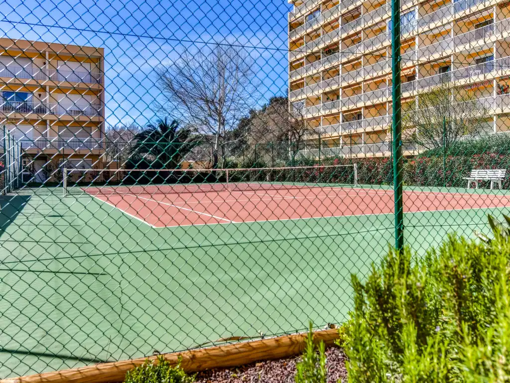 Le Lavandou: Residence "Les Cyclades", 3 storeys. In the resort 400 m from the centre of Le Lavandou, 150 m from the sea, 150 m from the beach, road to cross. For shared use: swimming pool angular fenced (17 x 7 m, depth 150 cm, seasonal availability: 01.Jun. - 30.Sep. pool opening hours: 09:00-12:30 and 15:00-19:30). Tennis, boccia. In the complex: storage room for bicycles. Public parking 50 m on the road. Shop 100 m, grocery, supermarket 150 m, restaurant 100 m, bar, bakery, café 150 m, internet café 1 km, bicycle rental 900 m, 10 minute walk to the centre, bus stop "Lavandou Gare routière" 800 m, sandy beach 150 m. Sports harbour 1.5 km, golf course (18 hole) 15 km, sailing school 600 m, tennis 300 m, indoor tennis centre 1 km, minigolf 600 m. Nearby attractions: Saint Tropez 37 km, Jardin Olbius Riquier 25 km, Magic World 26 km, Le Jardin des Méditerranées 13 km. Hiking paths: Sentier du Littoral. Please note: no lift. The keys‘ handover takes place by the agency Interhome in Le Lavandou.2-room apartment 52 m2 on 2nd floor. Object suitable for 2 adults + 3 children. Comfortable furnishings: living/dining room with panoramic window with 1 double sofabed (140 cm, length 190 cm), TV and flat screen. Exit to the balcony. 1 room with 1 x 2 bunk beds (90 cm, length 190 cm), 1 french bed (140 cm, length 190 cm), air conditioning. Kitchen (oven, dishwasher, 3 induction hot plates, toaster, kettle, microwave, freezer, electric coffee machine) with small dining table. Exit to the loggia. Shower/WC. Electric heating, boiler (100 litres). Balcony 10 m2. Balcony furniture. View of the swimming pool. Facilities: washing machine, iron, hair dryer. Internet (WiFi, extra). Parking space n 25 (1 car). Please note: non-smokers only. TV only FR. Smoke alarm, no lift. Bed layout is flexible. There are more sleeping options available than the maximum number of people allowed which may, however, not be exceeded. 830700013918C
