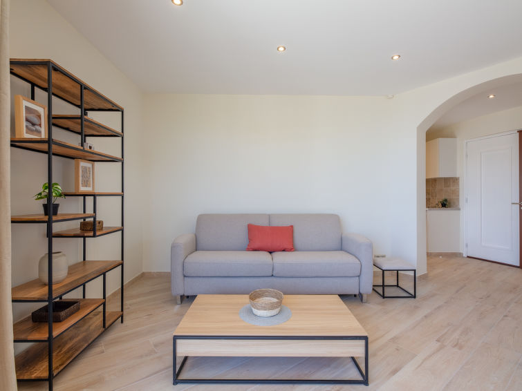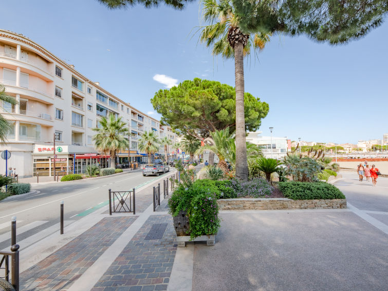 Residence "Les Dauphins", 4 storeys. In the centre of Sainte Maxime, in a sunny position, in the heart of the city, 20 m from the sea, 20 m from the beach, road to cross. Public parking 100 m. Shop, grocery 20 m, supermarket, shopping centre 850 m, restaurant 20 m, bar, bakery 50 m, bus stop 500 m, railway station "Saint-Raphaël TGV" 20 km, sandy beach "Centre Ville" 20 m, thermal baths "Thalasso Les Issambres" 7 km. Sports harbour 150 m, golf course (18 hole) 4 km, tennis 1.5 km. Nearby attractions: Aqualand Waterpark 5 km, Azur Park attractions 16 km, Saint-Tropez / Ramatuelle 16 km, Port-Grimaud 12 km, Gorges du Verdon 95 km, Navette / shuttle boat St-Tropez 15min 150 m. Hiking paths: Massif des Maures 5 km, Massif de l'Esterel 95 km. Please note: the keys‘ handover takes place by the agency Interhome in Sainte-Maxime. Airfield 70 km from the property.2-room apartment 46 m2 on 2nd floor, south-west facing position. Bright, fully renovated in 2023, beautiful furnishings: entrance hall. Living/dining room with 1 double sofabed (1 x 160 cm, length 195 cm), TV (flat screen), air conditioning. Exit to the balcony. 1 room with 1 french bed (1 x 160 cm, length 200 cm), air conditioning. Open kitchen (2 ceramic glass hob hotplates, toaster, kettle, electric coffee machine, combination microwave). Shower, sep. WC. Air-conditioning. Small balcony 5 m2, south facing position and west facing position. Balcony furniture. Very beautiful view of the sea. Facilities: washing machine. Internet (WiFi, free). Please note: non-smokers only, no parking. Smoke alarm, no lift. Offer by a commercial proprietor according to Art. 155, IV, CGI 83115004874HT