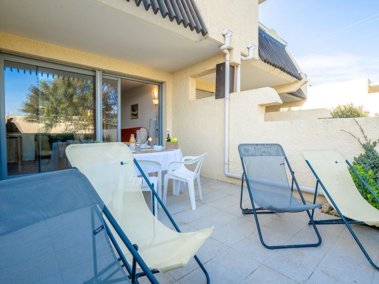 Residence "Les Louvans". In the resort 200 m from the centre of Saint Aygulf, excellent location: right in the centre but still quiet, 30 m from the sea, 30 m from the beach, direct access to the beach. For shared use: garden 1 ha (fenced) with plants and flowers, parking on the premises. Shop 200 m, shopping centre 4.5 km, 2 minute walk to the centre, bus stop "Saint-Aygulf La Poste" 350 m, railway station "Fréjus" 5 km, sandy beach "La Galiotte" 1 km, shingle beach "Calanque des Louvans" 30 m, park "ARECA" 800 m, diving center 6 km, thermal baths "Thalasso de Port Fréjus" 6 km. Sports harbour 1 km, golf course (18 hole) 8 km, sailing school 7 km, riding stable 3 km. Nearby attractions: Aqualand, Lunapark 5 km, Fréjus 6 km, St Raphael 8 km, St Tropez 29 km, Cannes 47 km, Nice 71 km. Well-known ski regions can easily be reached: Auron, Isola 2000 150 km. Well-known lakes can easily be reached: Lac de St Cassien 45 km, Lac du Du Verdon 90 km. Hiking paths: Estérel 16 km, Sentier du Littoral 30 m. Please note: no lift. Residence with electric gates.2-room apartment 45 m2, on the ground floor, east facing position. Renovated in 2021, beautiful and modern furnishings: living room with panoramic window with 1 double sofabed (140 cm, length 190 cm), TV (flat screen), fan and electric shutters. Exit to the terrace. 1 room with 2 beds (90 cm, length 190 cm), fan. Open kitchen (oven, dishwasher, 3 ceramic glass hob hotplates, toaster, kettle, microwave, freezer, electric coffee machine) with dining nook. Shower/WC. Electric heating. Terrace 20 m2, east facing position. Terrace furniture, deck chairs (4). View of the sea. Facilities: iron. Internet (WiFi, extra). Parking space n B13. Please note: suitable for families. Non-smoking house. TV only FR. Smoke alarm. FJS831HT
