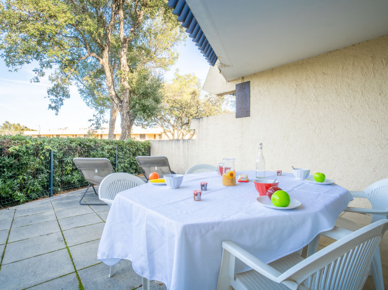 Residence "Les Louvans". In the resort 200 m from the centre of Saint Aygulf, excellent location: right in the centre but still quiet, 30 m from the sea, 30 m from the beach, direct access to the beach. For shared use: garden 1 ha (fenced) with plants and flowers, parking on the premises. Shop 200 m, shopping centre 4.5 km, 2 minute walk to the centre, bus stop "Saint-Aygulf La Poste" 350 m, railway station "Fréjus" 5 km, sandy beach "La Galiotte" 1 km, shingle beach "Calanque des Louvans" 30 m, park "ARECA" 800 m, diving center 6 km, thermal baths "Thalasso de Port Fréjus" 6 km. Sports harbour 1 km, golf course (18 hole) 8 km, sailing school 7 km, riding stable 3 km. Nearby attractions: Aqualand, Lunapark 5 km, Fréjus 6 km, St Raphael 8 km, St Tropez 29 km, Cannes 47 km, Nice 71 km. Well-known ski regions can easily be reached: Auron, Isola 2000 150 km. Well-known lakes can easily be reached: Lac de St Cassien 45 km, Lac du Du Verdon 90 km. Hiking paths: Estérel 16 km, Sentier du Littoral 30 m. Please note: no lift. Residence with electric gates.3-room apartment 63 m2, on the ground floor, west facing position. Renovated in 2020, comfortable and modern furnishings: living/dining room with panoramic window with TV (flat screen), air conditioning. Exit to the terrace. 1 room with panoramic window with 2 beds (90 cm, length 200 cm), air conditioning. Exit to the terrace. 1 room with 2 beds (90 cm, length 200 cm), air conditioning. Open kitchen (dishwasher, 3 induction hot plates, toaster, kettle, freezer, electric coffee machine, Capsules for coffee machine (Nespresso) extra, combination microwave). Shower, sep. WC. Heating. Terrace 49 m2. Terrace furniture, deck chairs (4). Facilities: washing machine, iron, hair dryer. Internet (WiFi, free). Parking space n C3 (1 car). Please note: smoke alarm. KQSZZA