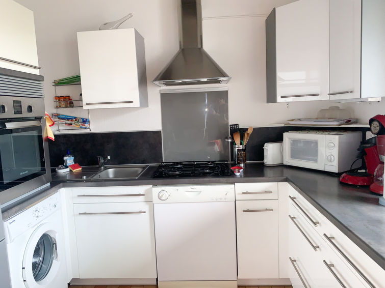 Residence "Les Maldives". In the district of Richelieu, 2 km from the centre, 100 m from the sea, 100 m from the beach. Shop, grocery, restaurant 50 m, bus stop "Pacifique" 270 m. Sports harbour 2 km, golf course (27 hole) 900 m. Nearby attractions: Aqualand 800 m, Ile des loisirs 1.2 km. Please note: the photograph shows a typical example.2-room apartment 38 m2 on 2 levels. Object suitable for 2 adults + 2 children. Bright, fully renovated in 2010, practical and comfortable furnishings: living/dining room with TV (flat screen), DVD, electric heater and air conditioning. Exit to the balcony. 1 room with 1 double bed (140 cm, length 190 cm). Open kitchen (oven, dishwasher, 4 ceramic glass hob hotplates, microwave, freezer, electric coffee machine, Capsules for coffee machine (SENSEO) extra). Bathroom, sep. WC. Air-conditioning. Upper floor: open gallery with sloping ceilings, ceiling height 150 - 220 cm, window onto the courtyard with 1 sofabed (140 cm, length 190 cm). Balcony 14 m2, east facing position and south facing position. Balcony furniture. View of the countryside. Facilities: washing machine. Internet (WiFi, extra). Parking space n F11. Please note: suitable for families. Non-smokers only. Smoke alarm. Instead of an enclosed bedroom, some sleeping areas are located in an open-plan area (gallery, alcove, etc.).