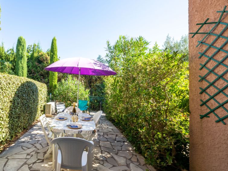 Resort "Les Olivades". 50 apartments in the residence. 550 m from the centre of Plan-de-la-Tour, 11 km from the centre of Sainte Maxime, 30 km from the centre of Fréjus, 10 km from the sea. For shared use: property (fenced) with plants, swimming pool (12 x 6 m, seasonal availability: 01.May. - 01.Oct.). Parking on the premises. Shop 450 m, supermarket 7.5 km, bus stop 500 m, sandy beach 10 km. Residence with electric gates."Les Olivades", 3-room terraced house 35 m2 on 2 levels. Object suitable for 2 adults + 2 children. Living/dining room with dining table and TV (flat screen), CD-player and air conditioning. Exit to the terrace. Kitchenette (3 ceramic glass hob hotplates, toaster, kettle, electric coffee machine, combination microwave). Sep. WC. Upper floor: 1 room with 1 french bed (140 cm, length 190 cm), air conditioning. 1 small room with 1 sofabed (80 cm, length 190 cm), 1 pull-out bed (2 x 80 cm, length 190 cm). Shower/WC. Electric heating. Terrace 15 m2. Terrace furniture. Facilities: washing machine. Please note: smoke alarm. 83094000449R6
