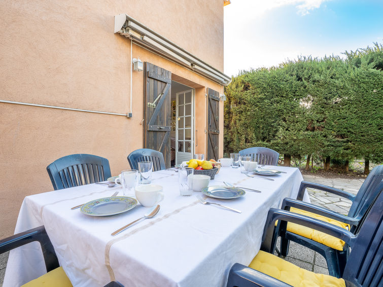 Frejus 2 km from St Raphael: Single-family house "Les Troenes". In a hamlet, on the outskirts, 1 km from the centre of Frejus, 2.5 km from the sea, 2.5 km from the beach. Private: well-kept garden 500 m2 with wildlife garden and trees, parking at the house. Shop 1 km, grocery 2 km, restaurant 2 km, bus stop 550 m, railway station 3 km, sandy beach 2.5 km. Golf course (18 hole) 6 km. Nearby attractions: Saint-Raphaël 2 km, Fréjus Centre Ville 2 km, Cannes 40 km, Saint-tropez 40 km, Nice 70 km, Gorges du Verdon 90 km. Well-known lakes can easily be reached: Sainte-Croix 90 km. Hiking paths: Estérel 6 km. Please note: car recommended. The owner does not accept any youth groups. Residence with electric gates. The keys‘ handover takes place by the agency Interhome in Port Fréjus, 2 km.4-room house 100 m2 on 2 levels. Living/dining room with TV. Exit to the garden, north-west facing position. Kitchen (oven, dishwasher, 4 ceramic glass hob hotplates, toaster, microwave, freezer, electric coffee machine). Sep. WC. Upper floor: 1 room with 1 french bed (2 x 90 cm, length 190 cm), electric heating and air conditioning. 1 room with 1 french bed (140 cm, length 190 cm), electric heating and air conditioning. 1 room with 1 french bed (140 cm, length 190 cm), electric heating and air conditioning. Shower/WC. Gas heating. Garden 500 m2. Terrace furniture. Facilities: washing machine, dryer, iron. Internet (WiFi, extra). Parking. Please note: smoke alarm.
