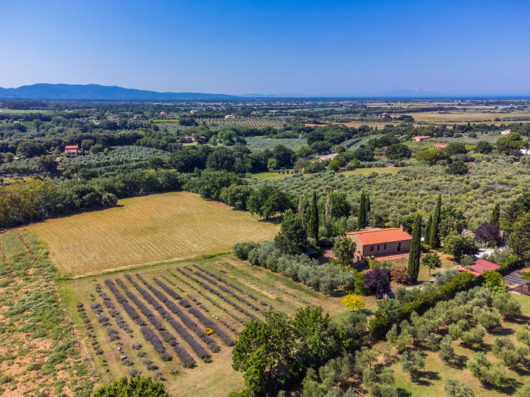 In olive groves and lavender fields is the beautiful rustic country house with 3 completely separate apartments not far from the coast (7.5 km). An ideal place to relax and enjoy 3-family house, 2 storeys, surrounded by trees and fields. 3.5 km from the centre of Bibbona, 9 km from the centre of Cecina, in a secluded, quiet position, 7.5 km from the sea. For shared use: natural state property, garden (not fenced). In the complex: reception, restaurant. Breakfast on request (extra). Motor access (1.2 km via unmade road). Roofed, parking at the house. Grocery 3.5 km, supermarket 8 km, bakery 3.5 km, bus stop 2 km, sandy beach "Marina di Cecina" 7.5 km, thermal baths "Calidario" 36 km. Marina 25 km. Nearby attractions: Bolgheri 8 km, Pisa 65 km, Livorno 45 km, Firenze 120 km. On the estate animal husbandry. Local sale of farm products."Levante", 3-room apartment 65 m2, on the ground floor. Beautiful and tasteful furnishings: living/dining room. 1 double bedroom. 1 room with 2 beds. Open kitchen (Gas stove, 4 gas rings, toaster, kettle, electric coffee machine) with dining table. Shower/bidet/WC. Gas heating (extra). Large patio 25 m2, partly roofed. Terrace furniture, barbecue, deck chairs (2). Beautiful view of the countryside. Facilities: washing machine, iron, mosquito net, children's high chair, baby cot for up to 2 year olds, hair dryer. Internet (WiFi, free). Please note: maximum 2 pets/ dogs allowed. Private entrance. IT049001B5LV2C3KD4