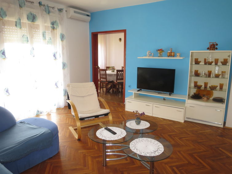 2-family house "Lidija". In the district of Bunarić 700 m from the centre of Vir, in a sunny position, 200 m from the sea, 200 m from the beach. For shared use: property 700 m2 (fenced). Barbecue. In the house: internet access. Parking at the house on the premises. Shop 160 m, restaurant 300 m, bus stop 1.5 km, pebble beach 200 m. Please note: Property ref. HR4050.109.1 is situated on the same property.4-room apartment 120 m2 on 1st floor, south-west facing position. Living/dining room 45 m2 with satellite TV and air conditioning. Exit to the terrace. 2 rooms, each room with 1 double bed (2 x 90 cm, length 200 cm). 1 room with 1 french bed (160 cm, length 200 cm). Open kitchen (oven, dishwasher, 4 ceramic glass hob hotplates, kettle, microwave, freezer, electric coffee machine). Bath/bidet/WC, sep. WC. No heating option. Terrace 12 m2, roofed. Terrace furniture. Partial view of the sea. Facilities: baby cot. Internet (WiFi, free). Maximum 1 pet/ dog allowed.