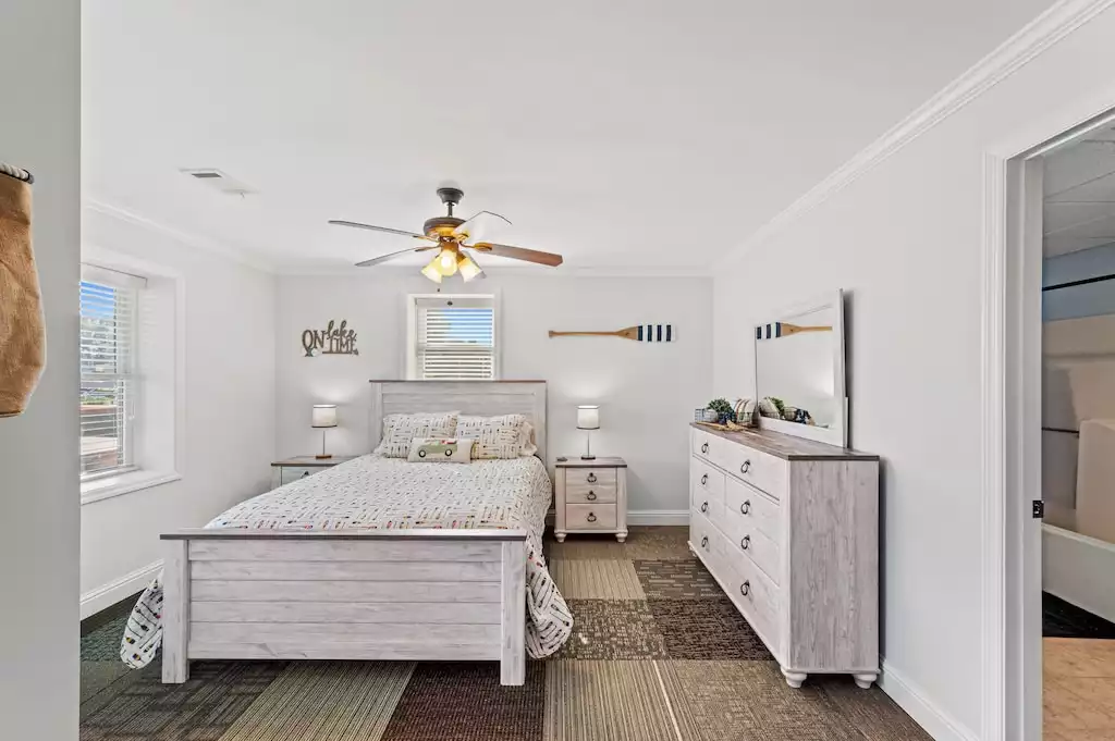 This ranch-style updated lake home features 2 large living areas, a fully-equipped kitchen plus 2 bedrooms and 2 baths on the mail level.