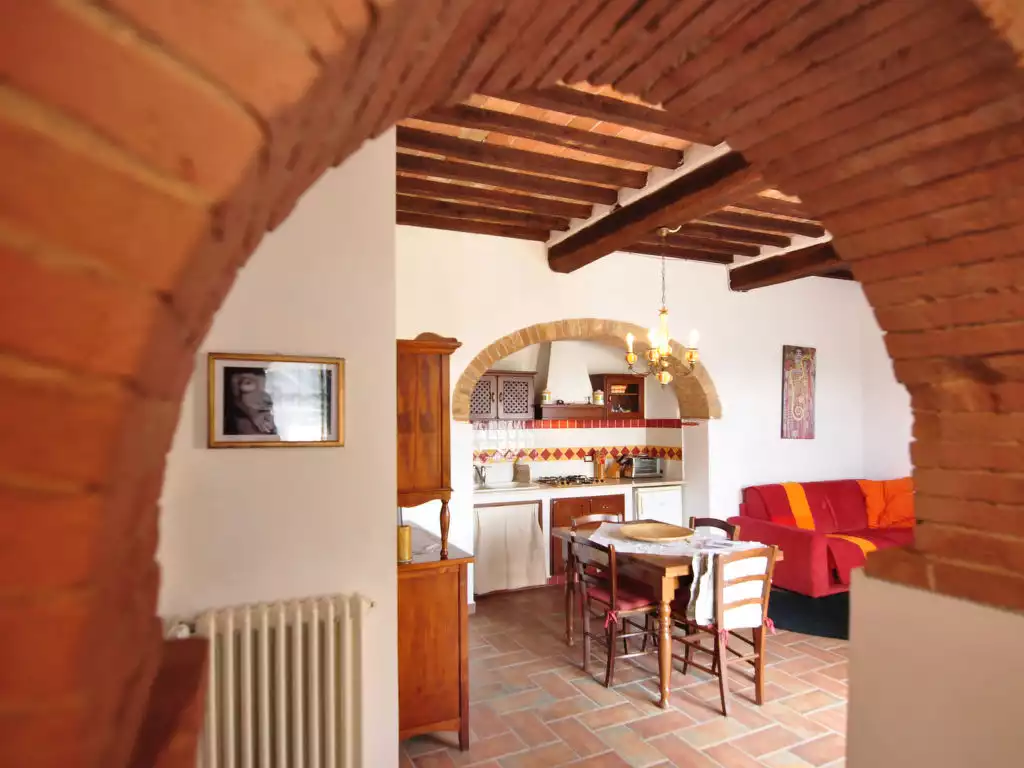 Very beautiful country house "Linearis", detached, surrounded by trees, fields and vineyards. 9 apartments in the residence. In the district of Linari 3 km from the centre of Poggibonsi, 6 km from the centre of Barberino Val d'Elsa, 15 km from the centre of San Gimignano, in a secluded, sunny, elevated position, 82 km from the sea, in the countryside. For shared use: beautiful, well-kept garden 10'000 m2 (fenced) with plants and trees, meadow, swimming pool fenced (14 x 7 m, depth 165 cm, seasonal availability: 01.Apr. - 05.Nov.). Outdoor shower, poolhouse with shower and WC, terrace, garden furniture, barbecue, children's playground, pool maintenance by the owner/gardener. In the complex: reception, lounge, washing machine (extra), tumble dryer (for shared use, extra). House maid on request (extra). 100 m footpath to the house. Parking on the premises, communal covered parking (extra). Grocery 2 km, supermarket 3 km, restaurant 2 km, bakery 2 km, bus stop 3 km, railway station "Poggibonsi" 3 km, sandy beach "Cecina Mare" 72 km, indoor swimming pool 3 km. Nearby attractions: Siena 36 km, Firenze 46 km, Volterra 38 km, Pisa 90 km. Please note: reception open 09:00-13:00 hrs. Suitable for families, baby equipment (included). Local sale of farm products. Please note: Loading and unloading of baggage is possible at the holiday house. Residence with electric gates. The owner lives in the same residence. All houses/apartments are individually designed/furnished. Obligation to wear bathing caps."Linearis C", 2-room apartment 56 m2, on the ground floor. Object suitable for 2 adults + 2 children. Bright, renovated, beautiful and tasteful furnishings: living/sleeping room with 1 double sofabed, dining table and satellite TV. Exit to the garden. 1 double bedroom. Kitchenette (mini-oven, 4 gas rings, electric coffee machine). Shower/bidet/WC. Gas heating. Natural stone floors. Patio. Terrace furniture, barbecue. Very beautiful panoramic view of the countryside. Facilities: mosquito net, children's high chair, baby cot for up to 2 year olds, hair dryer. Internet (WiFi, free). Parking, garage (extra) at the house. Please note: suitable for families. Non-smokers only. Maximum 1 pet/ dog allowed. Private entrance, fire extinguisher. No mandatory extra charges to be paid on-site except for local tax. Bedlinen, towels, final cleaning and all energy costs are included. IT048054B4SIWT4EGH