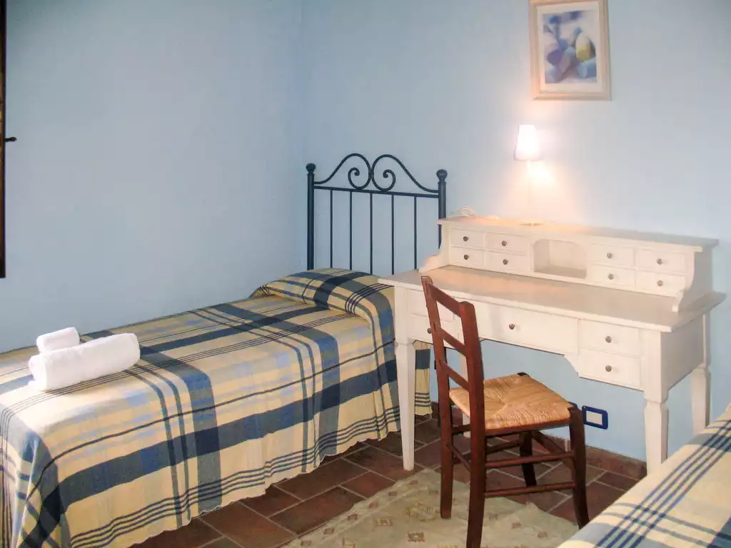 Very beautiful country house "Linearis", detached, surrounded by trees, fields and vineyards. 9 apartments in the residence. In the district of Linari 3 km from the centre of Poggibonsi, 6 km from the centre of Barberino Val d'Elsa, 15 km from the centre of San Gimignano, in a secluded, sunny, elevated position, 82 km from the sea, in the countryside. For shared use: beautiful, well-kept garden 10'000 m2 (fenced) with plants and trees, meadow, swimming pool fenced (14 x 7 m, depth 165 cm, seasonal availability: 01.Apr. - 05.Nov.). Outdoor shower, poolhouse with shower and WC, terrace, garden furniture, barbecue, children's playground, pool maintenance by the owner/gardener. In the complex: reception, lounge, washing machine (extra), tumble dryer (for shared use, extra). House maid on request (extra). 100 m footpath to the house. Parking on the premises, communal covered parking (extra). Grocery 2 km, supermarket 3 km, restaurant 2 km, bakery 2 km, bus stop 3 km, railway station "Poggibonsi" 3 km, sandy beach "Cecina Mare" 72 km, indoor swimming pool 3 km. Nearby attractions: Siena 36 km, Firenze 46 km, Volterra 38 km, Pisa 90 km. Please note: reception open 09:00-13:00 hrs. Suitable for families, baby equipment (included). Local sale of farm products. Please note: Loading and unloading of baggage is possible at the holiday house. Residence with electric gates. The owner lives in the same residence. All houses/apartments are individually designed/furnished. Obligation to wear bathing caps."Linearis E", 3-room apartment 55 m2 on 2 levels. Beautiful and tasteful furnishings: living/dining room with dining table and satellite TV. Exit to the garden. Kitchenette (mini-oven, 4 gas rings, toaster, kettle, electric coffee machine). Upper floor: 1 double bedroom. 1 room with 2 beds (80 cm). Shower/bidet/WC. Gas heating. Natural stone floors. Patio. Terrace furniture, barbecue. Very beautiful panoramic view of the countryside. Facilities: mosquito net, children's high chair, baby cot for up to 2 year olds, hair dryer. Internet (WiFi, free). Parking (1 car), garage (extra) at the house. Please note: suitable for families. Non-smokers only. Maximum 1 pet/ dog allowed. Private entrance, fire extinguisher. No mandatory extra charges to be paid on-site except for local tax. Bedlinen, towels, final cleaning and all energy costs are included. IT048054B4SIWT4EGH