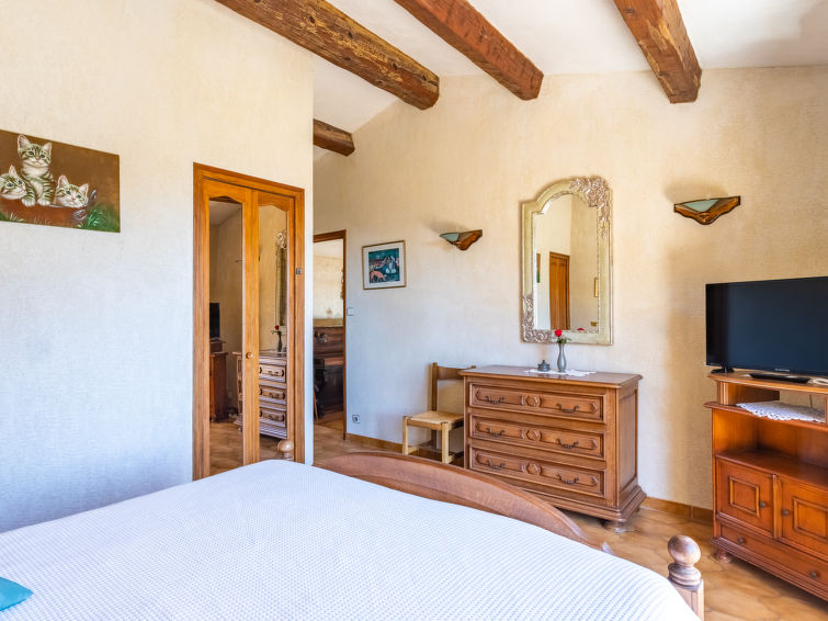 Cavalière 8 km from Le Lavandou: Simple, comfortable villa "Maison de l'Hubac Bleu", 2 storeys, built in 1985. In a quiet position on a slope, 1.5 km from the sea, 1.5 km from the beach, south facing position. Pool maintenance by the owner/gardener. Private: natural state property 1'000 m2, courtyard, indoor pool angular, secured (11 x 5 m, depth 80 - 200 cm, seasonal availability: 15.May. - 30.Sep.). Parking. Grocery 1 km, restaurant 800 m, bus stop "Mairie de Cavalière" 1.4 km, sandy beach "Cavalière" 1.1 km. Nearby attractions: St Tropez 35 km, Magic World 32 km, Le Jardin des Méditerranées 8 km. Hiking paths: Sentiers du Littoral. The keys‘ handover takes place by the agency Interhome in Le Lavandou, 8 km.4-room house 148 m2 on 2 levels, south facing position. Simple and comfortable furnishings: large living/dining room with TV (flat screen), air conditioning. Exit to the terrace. 1 room with 2 beds (90 cm, length 190 cm), air conditioning. 1 room with 1 french bed (160 cm, length 200 cm), air conditioning. Exit to the terrace. Kitchen (oven, dishwasher, Gas stove, 5 gas rings, toaster, kettle, microwave, electric coffee machine) with dining table, TV (flat screen). Shower, sep. WC. Upper floor: 1 room with 1 french bed (160 cm, length 200 cm), bath/shower/WC. Exit to the balcony. Gallery. Electric heating. Balcony 6 m2, south facing position, terrace 20 m2, south facing position. Terrace furniture. View of the sea and the countryside. Facilities: washing machine, hair dryer. Internet (WiFi, free). Parking. Please note: non-smoking house. TV only FR. Smoke alarm. Instead of an enclosed bedroom, some sleeping areas are located in an open-plan area (gallery, alcove, etc.). Offer by a private individual according to Art. 155, IV of CGI. 830700022762W