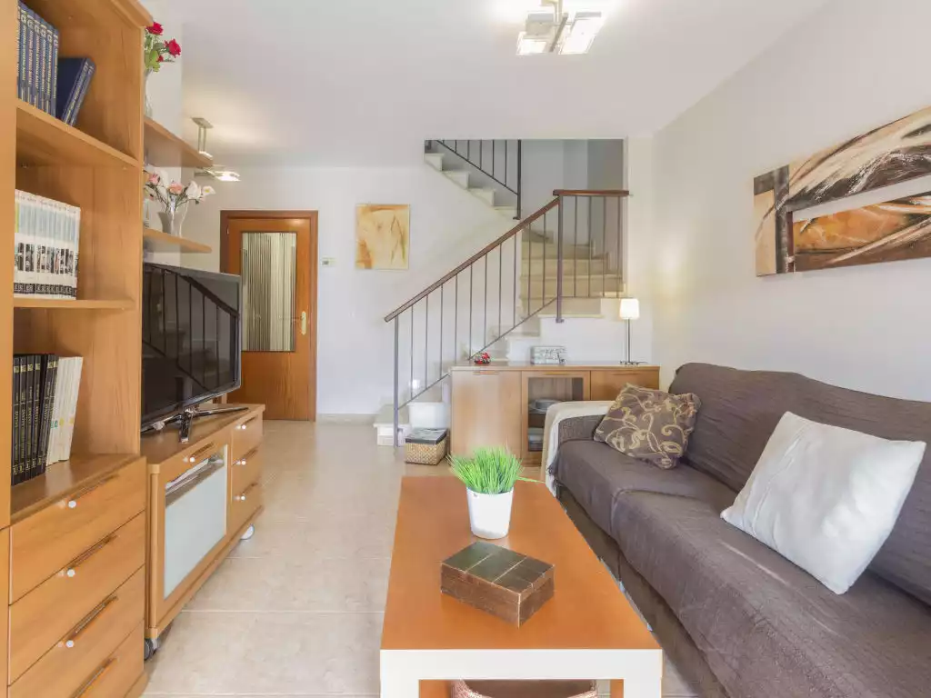 Pla de Roses: Large, comfortable terraced house "Malba", 2 storeys. In the district of Pla de Roses 3 km from the centre of Empuriabrava, in a quiet position residential area (villas), traffic calmed area, 3.2 km from the sea, 500 m from the lake, in a cul-de-sac. For shared use: park with lawn. Children's playground (swing). Grocery, supermarket 200 m, restaurant 100 km, bar 50 m, bicycle rental 3 km, bus stop 600 m, sandy beach "Empuriabrava" 3 km. Sports harbour 3 km, golf course (18 hole) 12 km, sailing school 3 km, tennis 1 km, minigolf 2 km, cycle lane 500 m. Nearby attractions: Parque Acuático Roses 5 km, Museu Dalí Figueres 15 km, Ruines Sant Marti d'Empuries 21 km, Festival Castillo de Peralada 14 km, Centro paracaidismo Skydive 700 m, Túnel del viento Empuriabrava 700 m. Please note: suitable for families. The keys‘ handover takes place by the agency Interhome in Empuriabrava. Neighbourhood highly sensitive to noise. Quietness and good behaviour expected.4-room terraced house 88 m2 on 2 levels. Comfortable and cosy furnishings: living/dining room with dining table, digital TV, flat screen, gas heating, air conditioning and forced-air heating. Exit to the terrace. Kitchen (dishwasher, 3 induction hot plates, microwave, freezer, electric coffee machine). Shower/WC. Upper floor: 1 room with 1 french bed (135 cm, length 190 cm). 1 children's room with 1 pull-out bed (2 pers. 2 x 90 cm, length 190 cm). 1 children's room with 2 beds (90 cm, length 190 cm). Bath/bidet/WC. Large terrace 20 m2. Terrace furniture, barbecue. Facilities: washing machine, iron, baby cot, hair dryer. Internet (WiFi, free). Please note: suitable for families. TV only ES. HUTG051703