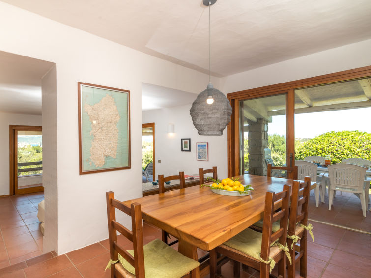 Cosy, comfortable 3-family house "Li Mucchi Bianchi", 2 storeys. 1.5 km from the centre of Baja Sardinia, in the residential district, 1 km from the sea, in a cul-de-sac. 60 m long narrow motor access to the house. Parking on the premises. Supermarket 1 km, restaurant 1 km, bar 1 km, bus stop 2 km, sandy beach "Baja Sardinia" 1 km. Nearby attractions: Aquapark Aquadream 750 m, Porto Cervo 6 km, Cannigione 10 km, Arzachena 13 km, San Pantaleo 13 km. Please note: car recommended. Animals in the neighbourhood."Mannu", 4-room house 150 m2, on the upper floor. Partly renovated in 2022, comfortable and cosy furnishings: living/dining room, on 2 levels with open-hearth fireplace (only for decoration), digital TV. Exit to the terrace. 1 double bedroom. 1 double bedroom. Exit to the terrace. 1 room with 1 bed and 1 pull-out bed (2 pers. 2 x 80 cm, length 190 cm). Kitchen (oven, dishwasher, 5 gas rings, toaster, kettle, microwave). Exit to the terrace. 2 showers/bidet/WC. No heating option. Large terrace partly roofed, garden. Terrace furniture, barbecue. Beautiful view of the sea and the countryside. Facilities: washing machine, iron, children's high chair, baby cot (extra), hair dryer. Parking (1 car) at 10 m. Maximum 1 pet/ dog allowed. No internal connecting door between the separated properties. IT090006C26F8GOMCX
