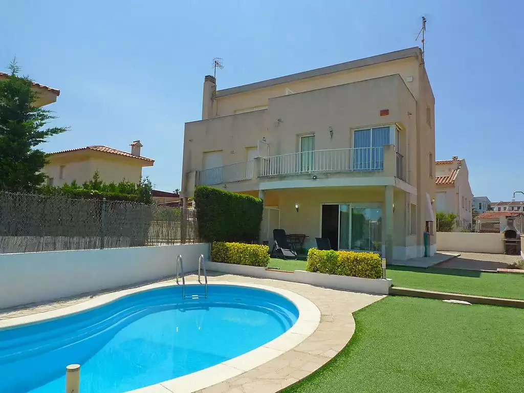 House situated on the seaside promenade, in the first row from the sea. Modern, beautiful semi-detached house "Mar", 3 storeys. In the resort 1 km from the centre of l'Ampolla, in a sunny position, 50 m from the sea, 250 m from the beach, road to cross, south facing position. Private: garden (fenced), swimming pool kidney shaped (3 x 6 m, seasonal availability: 01.Jun. - 31.Oct.). Outdoor shower, patio (10 m2), garden furniture, barbecue. Available: bicycles (2). Grocery 1 km, shopping centre 1 km, restaurant 50 m, bus stop 11 km, railway station 1 km. Nearby attractions: Parque Natural del Ebro 5 km, parque Portaventura 65 km, Pitch & Putt 2 km. Groups of teenagers on request only.5-room terraced house 120 m2 on 3 levels. Practical and cosy furnishings: living/dining room 18 m2 with dining table and TV. Exit to the garden, to the swimming pool. Open kitchen (4 hot plates, oven, dishwasher, microwave, freezer, electric coffee machine) with bar. Sep. WC. Upper floor: 1 room with 1 bed (90 cm). Exit to the balcony. 1 room with 1 french bed (135 cm), TV. Exit to the balcony. 1 room with 1 french bed (135 cm). Shower/WC. Air-conditioning, forced-air heating (extra). 2nd upper floor: (spiral staircase), 1 large room with 3 beds (90 cm), TV and DVD. Exit to the terrace. Air-conditioning, forced-air heating (extra). Balcony 8 m2, terrace 15 m2, patio 10 m2. Terrace furniture, barbecue. Very beautiful view of the sea and the countryside. Facilities: washing machine, safe, children's high chair. Internet (WiFi, extra). Parking at the house. Suitable for families. Synthetic grass around the pool. TV is an Smart TV. HUTTE000908 // Reg. Nr.: ESFCTU000043020000618628000000000000000000HUTE0009083