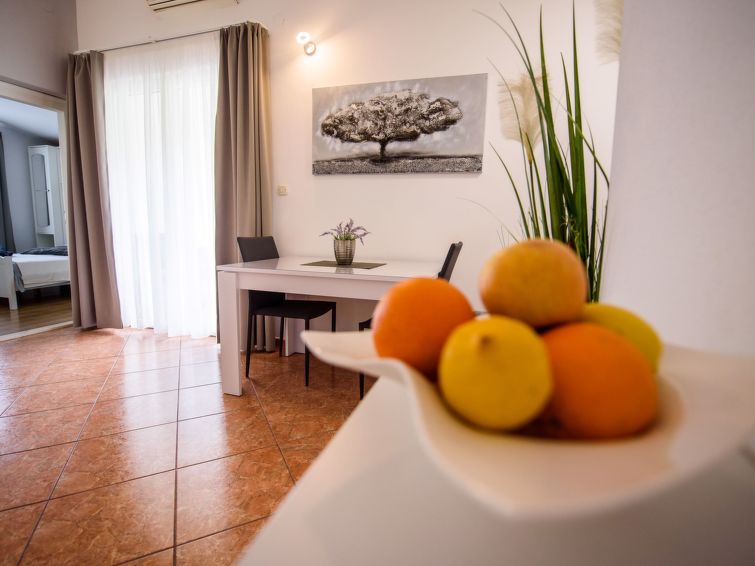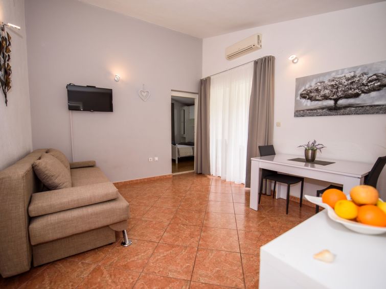 Razanj 10 km from Rogoznica: Beautiful apartment block "Marina". In the district of Ljoljinica, in a quiet, elevated position, 40 m from the sea. For shared use: outdoor shower, terrace, garden furniture, barbecue, roofed, parking at the house on the premises, communal covered parking. Shop, restaurant 200 m, bus stop 5.1 km, rocky beach 40 m. Please note: Additional accommodations can be booked.2-room apartment 32 m2 on 2nd floor. Beautiful and tasteful furnishings: living/dining room with 1 double sofabed (160 cm, length 200 cm), satellite TV (flat screen), air conditioning. Exit to the balcony. 1 room with 1 french bed (160 cm, length 200 cm). Open kitchen (2 ceramic glass hob hotplates, microwave, freezer, electric coffee machine). Shower/WC. Air-conditioning (extra). Balcony 6 m2. Terrace furniture. Facilities: Internet (WiFi, extra).