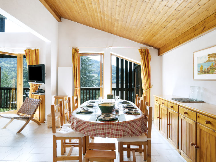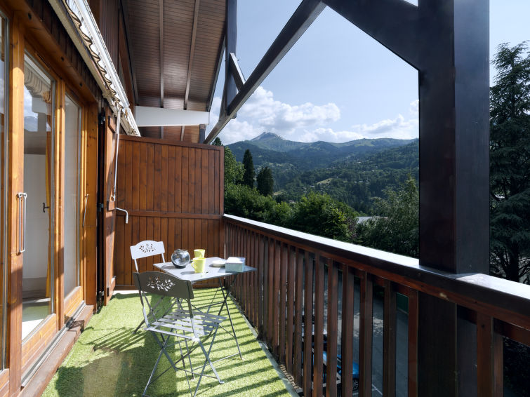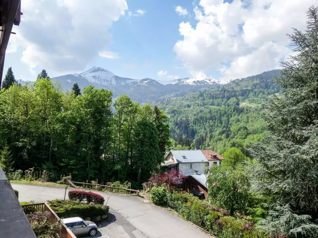 Residence "le Martagon". 200 m from the centre, in a quiet, sunny position, 8.4 km from the skiing area, located by a road. In the house: storage room for skis. In Winter: please take snow chains. Parking. Grocery, restaurant 200 m, bus stop "Avenue de Miage" 160 m, railway station "Saint Gervais- Le Fayet" 5.1 km, outdoor swimming pool 500 m, thermal baths "Thermes de Saint Gervais" 5.5 km. Tennis 500 m, minigolf 500 m, skisport facilities 800 m, ski bus stop 200 m, ice rink 150 m. Well-known ski regions can easily be reached: Evasion Mont Blanc. Please note: car recommended. Ski bus (free of charge)."Martagon", 4-room maisonette 80 m2 on 2nd floor. Comfortable furnishings: living/dining room with TV, flat screen and DVD. Exit to the balcony. 1 room with 1 french bed (140 cm). 1 room with 1 x 2 bunk beds (90 cm). Open kitchen (4 hot plates, mini-oven, dishwasher, toaster, kettle, electric coffee machine, raclette grill, fondue Set (cheese)). Bathroom, shower/WC, sep. WC. Electric heating. Upper floor: gallery with sloping ceilings, - 180 cm with 2 beds (90 cm). 1 room with 1 french bed (140 cm, length 180 cm). Large balcony 10 m2. Deck chairs (2). Beautiful view of the mountains. Facilities: washing machine. Internet (WiFi, free). Please note: non-smokers only. TV only FR. Smoke alarm. Area of 20 m2 has a ceiling height of under 1.80 m. Instead of an enclosed bedroom, some sleeping areas are located in an open-plan area (gallery, alcove, etc.). ?