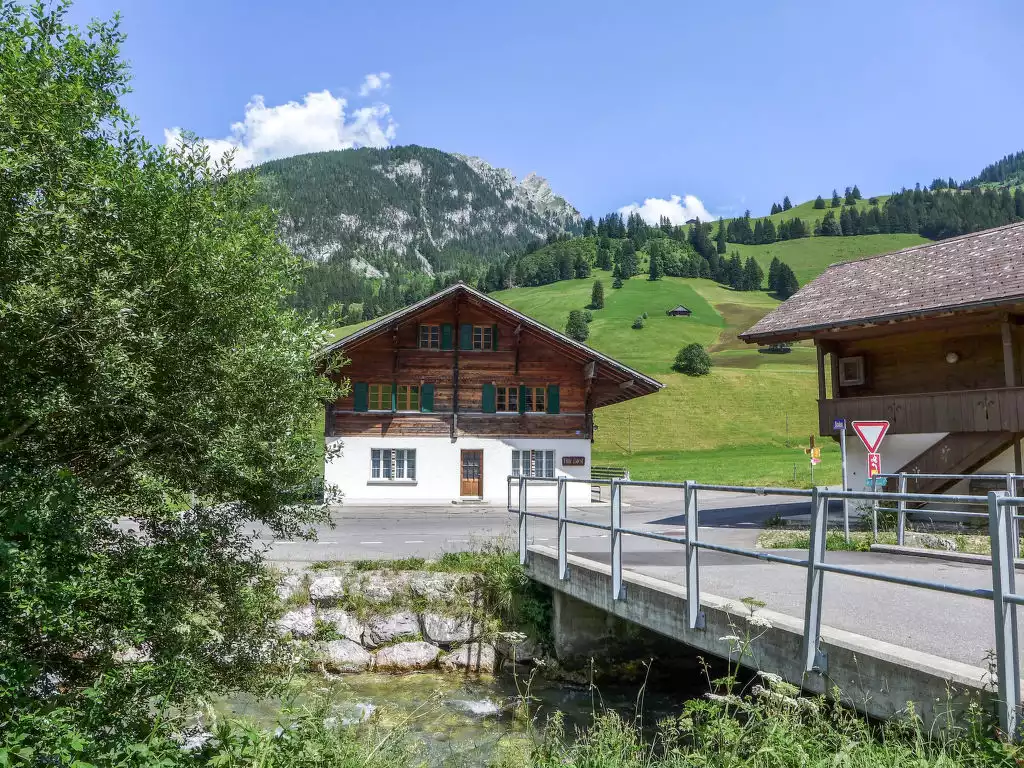 Schwenden 25 km from Spiez: Cosy, rustic 2-family house "Chalet Alte Post", 3 storeys, renovated in 2019. In a quiet, sunny position, 100 m from the edge of the forest, 2 km from the skiing area, 20 m from the stream, located by a road, in the countryside. In the house: storage room for bicycles, storage room for skis, central heating system. Pre-arrival grocery service. Parking at the house. Shop 10 km, bus stop 20 m. Tennis 10 km, riding stable 4 km, sports centre 10 km, walking paths from the house 10 m, cycle lane 50 m, skisport facilities 1.5 km, cross country ski track 50 m, children's playground 1 km. Nearby attractions: Naturpark Diemtigtal, Schloss Spiez, Interlaken, Thun. Well-known ski regions can easily be reached: Grimmialp, Wiriehorn. Well-known lakes can easily be reached: Thunersee. Hiking paths: Diemtigtaler Hauswege, Erlebnisweg Grimmimutz. Please note: car recommended. Groups of teenagers on request only. Ski bus (free of charge). Additional accommodations can be booked."Matte (Alte Post)", 3-room apartment 118 m2, on the ground floor. Spacious and bright, renovated in 2019, comfortable and tasteful furnishings: large living/dining room with dining table, digital TV, flat screen, radio and hi-fi system. 2 double bedrooms, each room with 1 double bed (160 cm, length 200 cm). Large, open kitchen (oven, dishwasher, 4 ceramic glass hob hotplates, toaster, kettle, microwave, freezer, electric coffee machine, Capsules for coffee machine (Nespresso) extra, raclette grill, fondue Set (cheese)) with dining table. Exit to the garden. Shower/WC, sep. WC. Underfloor heating. Wooden floors. Large terrace, south facing position, patio. Marvellous view of the mountains and the countryside. Facilities: washing machine, dryer, iron, children's high chair, baby cot for up to 2 year olds (extra), hair dryer. Internet (WiFi, free). Parking (2 cars). Please note: suitable for families. Non-smokers only. Smoke alarm, fire extinguisher. Breakfast basket with local products can be booked separately.