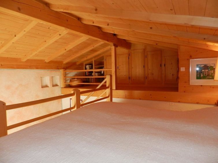 Living-/dining room with open-plan kitchen (among other things furnished with coffee machine with capsules (Nespresso) as well as a fondue- and raclette-set), dining table, chimney and sofa. 1 bedroom with 2 single beds (2x90x200cm) which are pushed together. 1 bedroom with 2 single beds (2x90x200cm), round table, little sofa, TV and gallery with 2 other single beds (2x90x200cm). 1 bathroom with bathtub and toilet. WiFi.