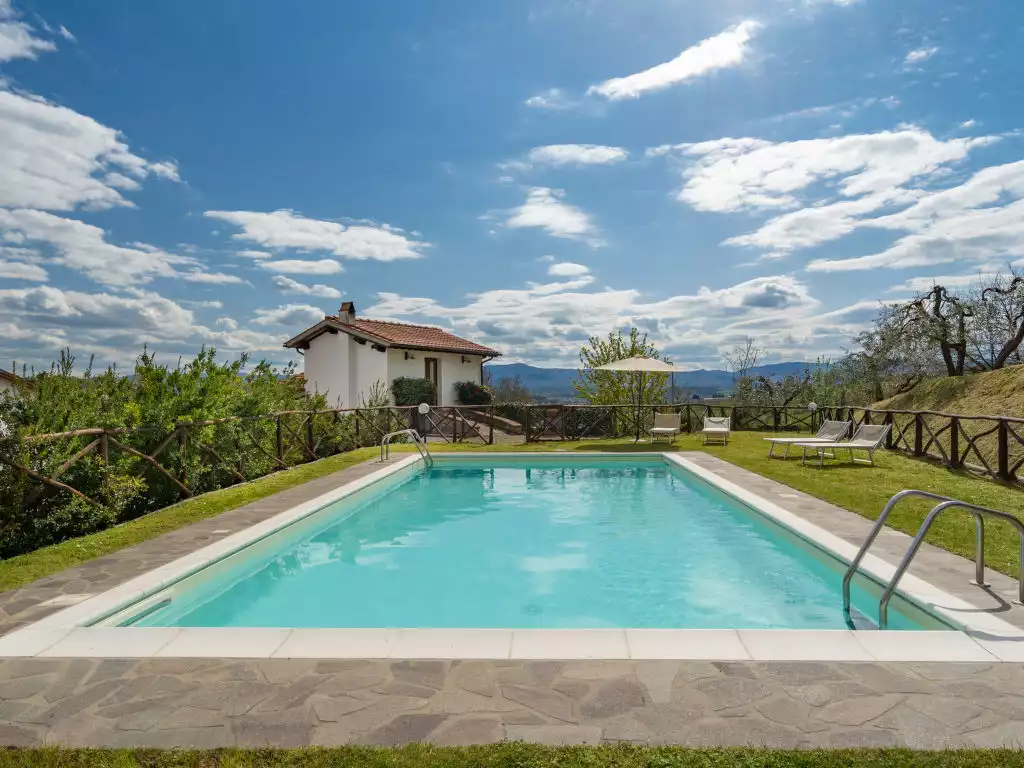 Country house "Melograno". 800 m from the centre of Terranuova Bracciolini, on the outskirts, 40 km from the centre of Arezzo, 52 km from the centre of Firenze. For shared use: property 10'000 m2 (fenced), orchard. Private: swimming pool (10 x 5 m, seasonal availability: 01.May. - 30.Sep.). Outdoor shower. Heating to be paid on the spot, heating available only from 01.Nov. - 07.Apr.. Parking on the premises. Shop 800 m, supermarket 600 m, bus stop 1 km, railway station "Montevarchi" 7 km. Golf course (3 hole) 16 km. Nearby attractions: Loro Ciuffenna 6.5 km, Castelfranco Piandiscò 14.5 km, Gaiole in Chianti 25 km, Radda in Chianti 28 km, Greve in Chianti 34 km. Please note: the owner lives on the same property.5-room house 116 m2 on 3 levels. Renovated, rustic and cosy furnishings: living room with satellite TV. 1 room with 1 french bed (160 cm). Dining room with dining table. Open kitchen (oven, dishwasher, 4 gas rings, toaster, microwave, freezer, electric coffee machine). Shower/bidet/WC. Upper floor: 1 room with 1 french bed (160 cm). Exit to the garden. Shower/bidet/WC. Heating. 2nd upper floor: 1 room with sloping ceilings with 2 beds (80 cm). Exit to the garden. Patio, garden 500 m2. Barbecue (portable), deck chairs. Panoramic view. Facilities: washing machine, iron, children's high chair, baby cot for up to 2 year olds. Internet (WiFi, free). Parking (fenced 2 cars) at 30 m. Please note: non-smoking house. Smoke alarm, fire extinguisher. IT051039C26QCIZXMH