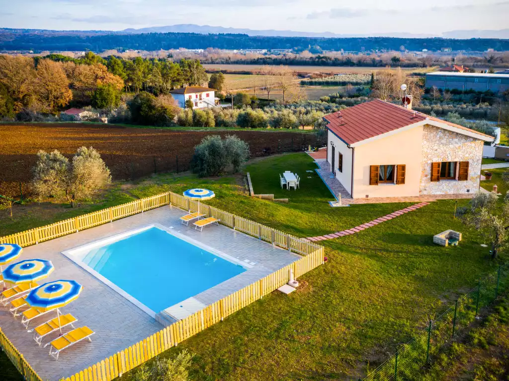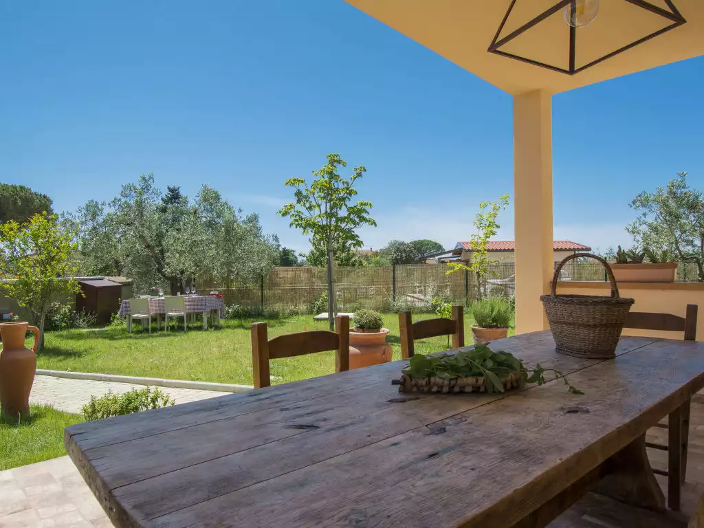 Very beautiful house "Melograno", built in 2020. 8.5 km from the centre of Riparbella, 4 km from the centre of San Pietro in Palazzi, 5 km from the centre of Cecina, in a sunny, elevated position, 8.5 km from the sea, in the countryside. Private: property 4'000 m2 (fenced), garden wildlife garden and trees, meadow, swimming pool fenced (8 x 5 m, depth 150 cm, seasonal availability: 27.Mar. - 06.Nov.). Outdoor shower, patio, terrace (15 m2), garden furniture, barbecue, children's playground, pool maintenance by the owner/gardener. 100 m long motor access (via unmade road). Parking (for 2 cars) on the premises. Supermarket 1.4 km, shopping centre 1.4 km, restaurant 2 km, bus stop "Sp 68 - Bivio Loc. Giardino" 150 m, railway station "San Pietro in Palazzi" 5.5 km, sandy beach "Cecina Mare, Bagno Gabbiano" 8.5 km pebble beach "Le Gorette" 7 km, indoor swimming pool 8.5 km, thermal baths "Calidario" 38 km. Nearby attractions: Pisa 52 km, Lucca 80 km, Firenze 112 km. EXTRA: A sun bed, a deck chair and an umbrella at the Bagno Gabbiano bathing establishment in Marina di Cecina, 8.5 km away, reserved for customers and included in the price.5-room house 115 m2 on 2 levels. Beautiful and tasteful furnishings: living/dining room with dining table and satellite TV. Exit to the terrace. 1 double bedroom with satellite TV. 1 room with 2 beds (80 cm). Open kitchen (oven, dishwasher, 4 gas rings, microwave, freezer, electric coffee machine). Shower/WC. Gas heating. Upper floor: (spiral staircase), 1 double bedroom with air conditioning. 1 room with 2 beds and air conditioning. Shower/WC. 2 terraces covered, lawn. Terrace furniture, barbecue, deck chairs (8), sitting area, box-room. Panoramic view. Facilities: washing machine, baby cot. Internet (WiFi, free). Please note: non-smokers only. Maximum 1 pet/ dog allowed. IT050030C2JT9NBM5Q