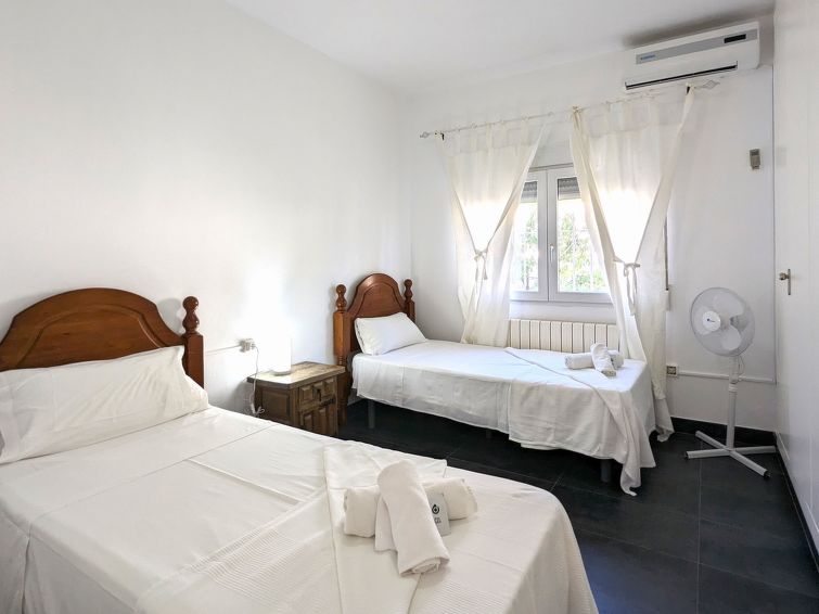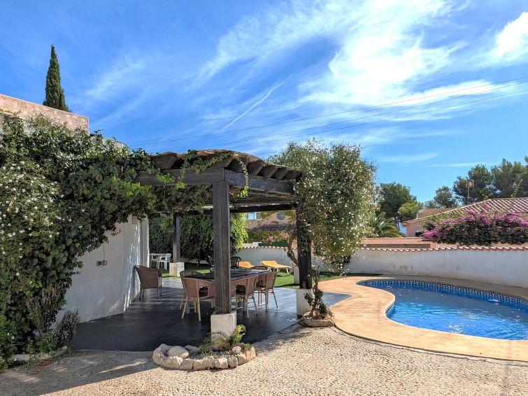 La Nucia: Large, simple house "Casa Mexico", detached. On the outskirts, 6 km from the centre of La Nucia, outside the resort, 6 km from the centre of Benidorm, in a quiet, sunny position residential area (villas), 6 km from the sea, 6 km from the beach. Private: property 600 m2 (fenced), garden with lawn and trees, swimming pool (2 x 4 m, seasonal availability: 01.May. - 30.Sep.). Outdoor shower, terrace, garden furniture, parking on the premises. Shop 900 m, supermarket 800 m, restaurant, bar, bus stop "Benidorm" 300 m, sandy beach "Benidorm" 6 km. Golf course (18 hole) 3 km. Nearby attractions: Aqualandia 8 km, Mundomar 8 km, Terra Mitica 6 km, Alicante 45 km, Aeropuerto Alicante 65 km, Terra Natura 6 km. Please note: car recommended. Baby equipment on request. The owner does not accept any youth groups. 1st floor is closed and not occupied."Mexico", 4-room house 110 m2. Object suitable for 6 adults. Spacious and bright, simple and practical furnishings: living/dining room 30 m2 with digital TV, air conditioning and forced-air heating. Exit to the garden, to the terrace, to the swimming pool. 1 room 22 m2 with 1 french bed (160 cm, length 190 cm), bath/WC, air conditioning and forced-air heating. Exit to the garden, to the terrace. 1 room 9 m2 with 2 beds (90 cm, length 190 cm), air conditioning and forced-air heating. 1 room 9 m2 with 2 beds (90 cm, length 190 cm), fan. Kitchenette (oven, dishwasher, 4 ceramic glass hob hotplates, toaster, kettle, microwave, freezer, electric coffee machine). Exit to the garden, to the terrace, to the swimming pool. Shower/bidet/WC. Terrace, patio 300 m2. Terrace furniture, deck chairs (3). View of the swimming pool, the garden and the resort. Facilities: washing machine, iron, hair dryer. Internet (WiFi, free). At the house. EGVT-593-A. VT-447189-A // Reg. Nr.: ESFCTU00000305300037003800000000000000000VT-447189-A4