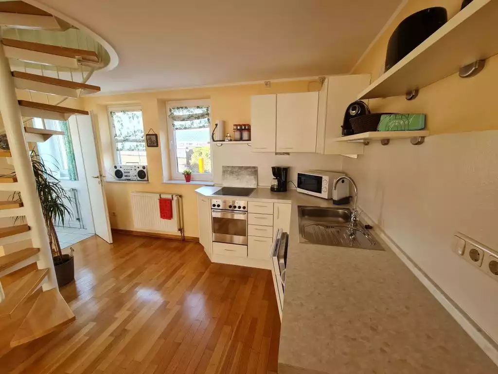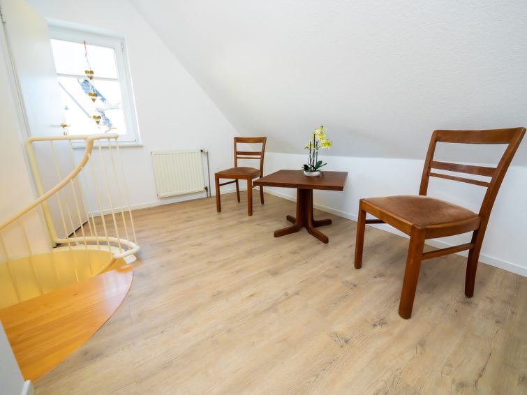 Modern house "Mia". In the resort Lügde, in a central, sunny position, 8 km from the lake, 700 m from the river. Private: property 500 m2, parking at the house. Supermarket 90 m, restaurant 120 m, bus stop 120 m, outdoor swimming pool 560 m, indoor swimming pool 2.2 km, lake Schiedersee 8 km. Golf course (18 hole) 2 km, tennis 800 m, riding stable 7.5 km.2-room semi-detached house 120 m2 on 2 levels. Comfortable and cosy furnishings: living/dining room with 1 double sofabed (140 cm, length 200 cm), satellite TV (flat screen), radio. Exit to the terrace. Open kitchen (oven, 4 ceramic glass hob hotplates, toaster, kettle, microwave, freezer, electric coffee machine). Sep. WC. Upper floor: (spiral staircase), 1 room with 1 double sofabed (130 cm, length 180 cm), 1 double bed (200 cm, length 200 cm). Shower/WC. Gas heating. Wooden floors, carpet. Terrace 20 m2. Terrace furniture, barbecue, deck chairs (2), box-room. Facilities: baby cot. Internet (WiFi, free). Please note: non-smoking house. Maximum 2 pets/ dogs allowed. Private entrance, smoke alarm.