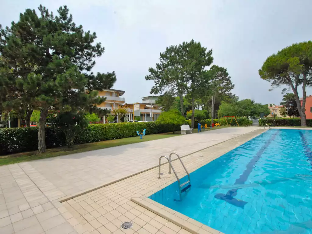 Cosy, comfortable residence "Michelangelo", terraced. In the centre of Bibione, excellent location: right in the centre but still quiet, 850 m from the sea, from the beach. For shared use: large garden with lawn and trees, swimming pool fenced (25 x 35 m, depth 150 - 150 cm, seasonal availability: 15.May. - 15.Sep.). Children's pool, outdoor shower, children's playground, parking at the house. Supermarket 500 m, restaurant, bar, café 300 m, bus stop 150 m, sandy beach, thermal baths 850 m. Please note: suitable for families. The photograph shows a typical example. Additional accommodations can be booked.3-room apartment 57 m2. Bright, simple and comfortable furnishings: living/sleeping room with 1 double sofabed, dining table and TV. 1 room with 1 double bed. 1 room with 2 beds. Small kitchen). Shower/bidet/WC. Air-conditioning, forced-air heating. Maximum 1 pet/ dog allowed. IT027034B4U84R9HFU