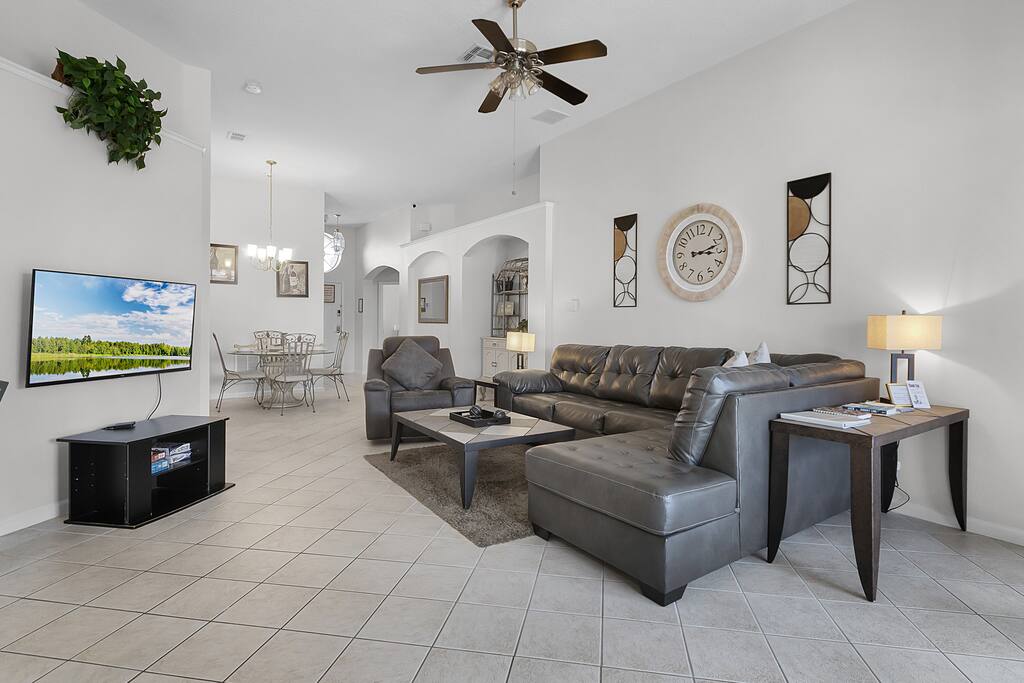With a well-functioning AC system, a fully furnished kitchen, and comfortable living room seating, our home ensures a delightful stay. Guests receive a keypad code for the front door upon arrival, and the property includes Wi-Fi access. The pool area is screened and fenced for privacy.