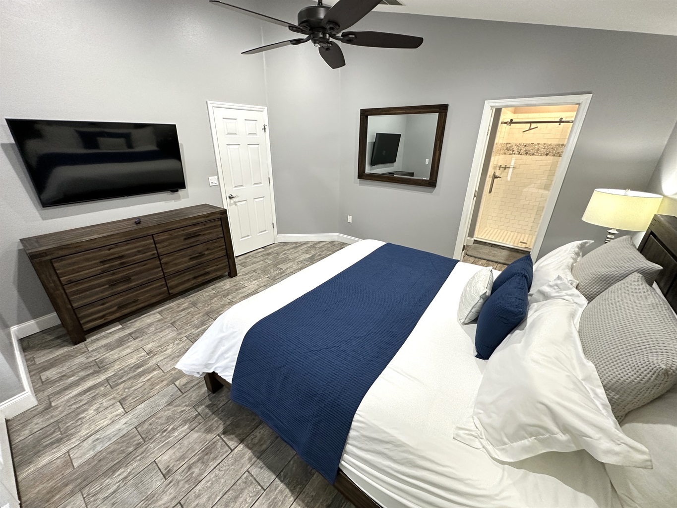 • Master Suite 1: California King bed, en-suite with large walk-in rain shower.