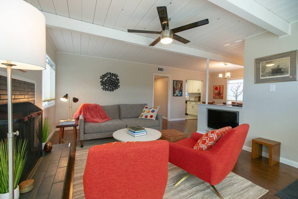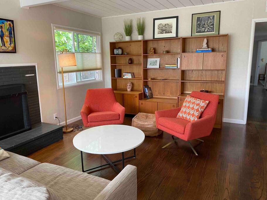 My recently renovated home was built in 1951, reminiscent of mid-century architecture including a wood plank, tongue and groover ceilings and beautiful hardwood floors. The built-in TV shelf was formerly a 2 ft high brick flower box in the middle of the living room complete with soil, leaves and drainage prior to be being repurposed for a TV. You'll find high quality furnishings, bedding, bathroom linens, full kitchenware, spices, appliances and glassware for evening cocktails.