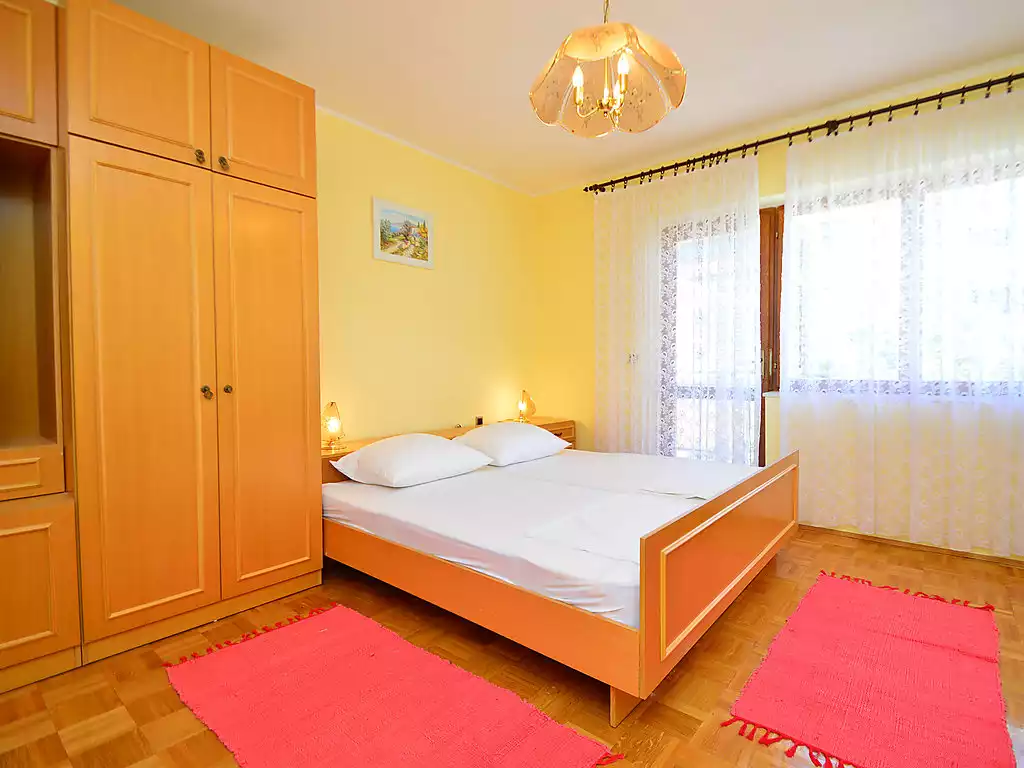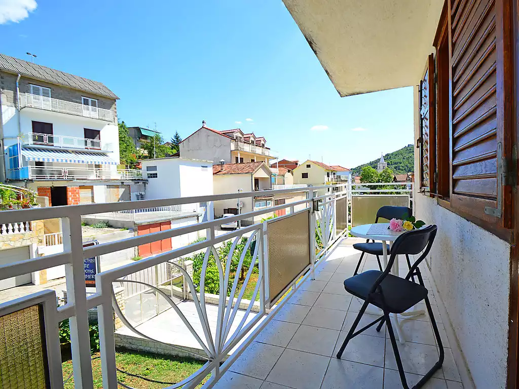 Apartment house "Milenko". 170 m from the centre of Zaton, 10 km from the centre of Vodice, in a sunny position, 260 m from the sea, 1.4 km from the beach, located by a road. For shared use: property 900 m2 (fenced). Terrace (50 m2), garden furniture, barbecue. In the house: internet access. Parking at the house on the premises. Shop 220 m, restaurant 270 m, bus stop 240 m, pebble beach 2 km, concrete beach 1.4 km. Nearby attractions: NP Krka 20 km.1-room apartment 25 m2 on 1st floor. Studio with 1 double bed (2 x 90 cm, length 190 cm), dining table and satellite TV (flat screen). Exit to the balcony. Kitchen (2 hot plates, electric coffee machine). Shower/WC. No heating option. Balcony 5 m2. Balcony furniture. Facilities: Internet (WiFi, free).