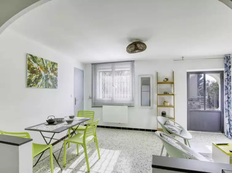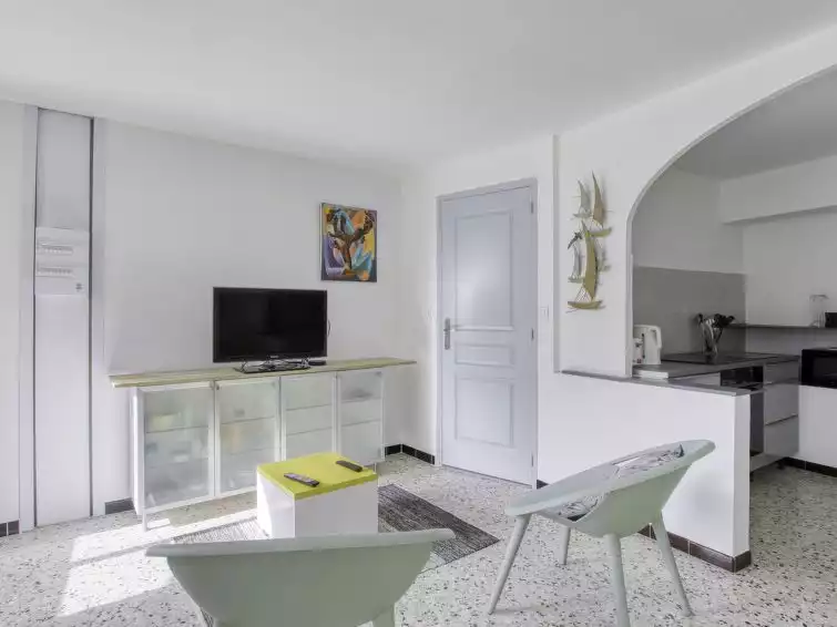 2-family house. 1.4 km from the centre of Six Fours Les Plages, 7 km from the centre of Sanary Sur Mer, 11 km from the centre of Bandol, 2.1 km from the sea. Private: garden 100 m2 (fenced), parking on the premises. Supermarket 1.8 km, restaurant 1.4 km, bakery 1.4 km, café 1.4 km, bus stop 300 m, railway station "Toulon" 13 km, sandy beach "La Coudoulière" 2.1 km. Golf course (18 hole) 14.2 km. Nearby attractions: Iles des Embiez, Porquerolles, Cassis 41 km. Please note: the owner lives on the same property. Owner lives in separate semi-detached house."Mimosa", 2-room apartment 40 m2, on the ground floor. Object suitable for 2 adults + 1 child. Comfortable and beautiful furnishings: living/dining room with dining table and TV. 1 room with 1 french bed (160 cm, length 200 cm). Interconnecting room with 1 double sofabed (140 cm, length 190 cm). Exit to the garden. Open kitchen (oven, 4 ceramic glass hob hotplates, toaster, electric coffee machine). Shower/WC. Electric heating. Terrace furniture, barbecue, deck chairs (2). Facilities: washing machine. Internet (WiFi, free). Please note: non-smoking house. Smoke alarm. Offer by a private individual according to Art. 155, IV of CGI.