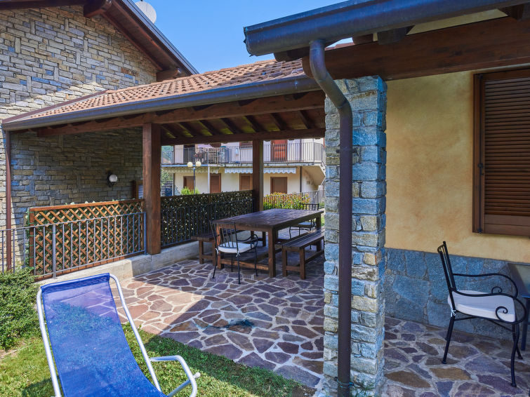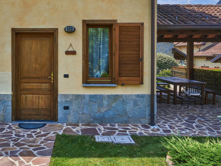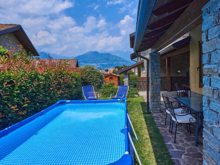House "Mina", 2 storeys. In the district of Laghetto 3 km from the centre of Colico, 40 km from the centre of Lecco, 65 km from the centre of Como, 500 m from the lake. Private: property 300 m2, well-kept garden (fenced), swimming pool (above ground) (2 x 3 m, depth 70 cm, seasonal availability: 01.Jun. - 30.Sep.). 20 m footpath to the house. Shop 300 m, supermarket 3 km, restaurant 300 m, bus stop 270 m, railway station "Colico: Piona" 250 m, pebble beach "Lido di Colico" 3 km, grass beach "Piona" 350 m. Marina 700 m, golf course (18 hole) 35 km, surf school 3 km. Nearby attractions: Forte Montecchio Nord, Abbazia di Piona, Torri di Fontanedo, Molino Maufet. Well-known lakes can easily be reached: Lago di Como, Lago di Mezzola. Hiking paths: Monte Legnone, Monti di Rosico.3-room house 90 m2 on 2 levels. Comfortable furnishings: living/sleeping room with 1 double sofabed and dining table. Exit to the garden. Open kitchen (oven, dishwasher, Gas stove, 4 gas rings, toaster, electric coffee machine). Shower/WC. Upper floor: with sloping ceilings, 1 double bedroom. 1 room with 2 beds. Sep. WC. Gas heating. Garden. Terrace furniture, barbecue (portable), deck chairs (4). Facilities: washing machine, children's high chair, baby cot for up to 2 year olds. Internet (WiFi, free). Parking (2 cars). Please note: non-smoking house. Maximum 1 pet/ dog allowed. IT097023C2J2E68QJ5