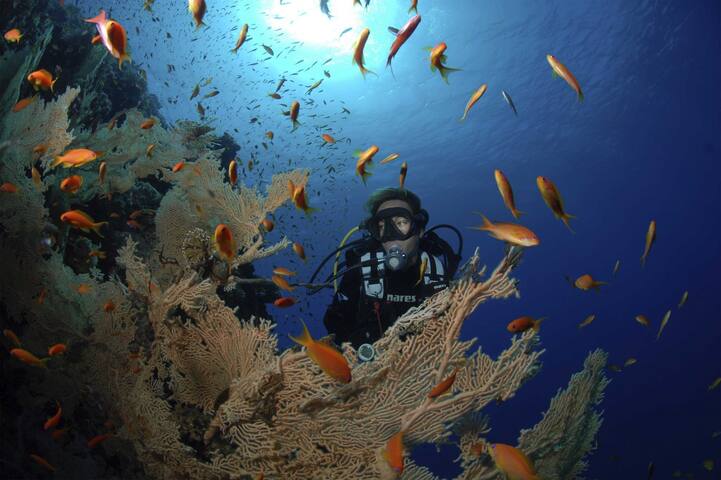 20-25 minute walks to the marina or the stunning owner's beach (S-Cape beach). 20-25 minutes walk to the marina. 5 minutes by golf cart or limousine. On the other side of the peninsula is a 300m pier which leads to Soma bay's house reef; perfect for snorkeling or diving. Very close to the Cascades hotel and golf course. 5 minutes walk away from the neighborhood infinity pool. Ask us about golf cart or bicycle rental.