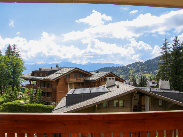 Villars-Sur-Ollon: Chalet "Les Montagnards", 3 storeys. In the centre of Villars, 500 m from the skiing area, south-east facing position. In the complex: storage room for skis, central heating system, washing machine (extra), tumble dryer (for shared use, extra). Parking (limited number of spaces). Shop 400 m, grocery 150 m, café, 3 minute walk to the centre, bus stop, railway station 900 m, indoor swimming pool 900 m, thermal baths "Lavey-les-bains" 20 km. Sports harbour 25 km, golf course (18 hole) 7 km, mountain railway 700 m, gondola lift 400 m, slopes, ski bus stop 900 m, children's playground 1 km. Please note: no lift. Free ski bus service to the ski region Villars."Montagnards 13", 1-room studio 23 m2. Renovated in 2017, comfortable and beautiful furnishings: living/sleeping room with 1 french bed (160 cm, length 200 cm), dining table, shower/WC and TV (flat screen). Exit to the balcony. Open kitchen (4 hot plates, oven, dishwasher, toaster, kettle, electric coffee machine, Capsules for coffee machine (Nespresso) extra, raclette grill, fondue Set (chinoise, cheese)). Balcony furniture. Beautiful view. Facilities: washing machine, dryer, hair dryer. Internet (WiFi, free). Maximum 1 pet/ dog allowed.