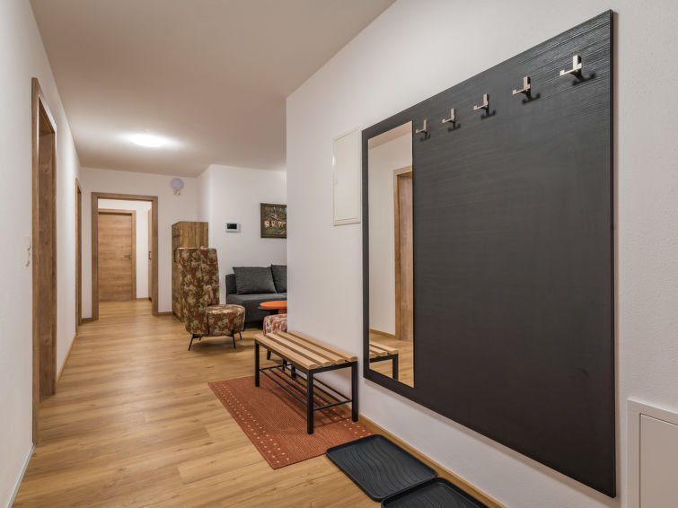 Very modern, comfortable house "Montec", 3 storeys. In the centre of Hippach 5 km from the centre of Mayrhofen, in a central, quiet, sunny position, 7.7 km from the lake, 2.7 km from the skiing area, in a cul-de-sac. In the house: WiFi, lift, storage room for skis, central heating system, ski boot dryer. Linen change weekly. Towel change weekly. Motor access to the house. Parking (for 5 cars). E-charging station. Supermarket 800 m, restaurant 400 m, bar 1.2 km, bakery 600 m, bicycle rental 1.5 km, pub garden 400 m, 5 minute walk to the centre, bus stop 100 m, outdoor swimming pool 550 m, indoor swimming pool 6.4 km. Walking paths from the house, cycle lane 20 m, gondola lift 2.7 km, slopes 4 km, ski rental 1 km, ski bus stop 100 m. Nearby attractions: Europahaus 5.6 km, Schaukäserei Mayrhofen 5 km, Krimmler Wasserfälle 45 km. Well-known ski regions can easily be reached: Ski-Zillertal-3000 2.7 km, Zillertal Arena 7 km, Hintertuxer Gletscher 24 km. Hiking paths: Wasserfallweg Stilluptal, Schönachtal. Please note: the owner lives in the same residence.8-room apartment 200 m2 on 2 levels. Spacious, comfortable and modern furnishings: large living/sleeping room with 1 pull-out bed and satellite TV. 1 large double bedroom with 1 double bed and satellite TV. 1 large room with 1 bed, 1 double bed, shower/WC and satellite TV. Alcove with 1 pull-out bed (2 pers.). 1 large room with 1 bed, 1 double bed, shower/WC and satellite TV. 1 large room with 1 bed, 1 double bed and satellite TV. 1 large double bedroom with 1 double bed, shower/WC and satellite TV. Large kitchen-/living room (oven, 4 ceramic glass hob hotplates, toaster, kettle, freezer, electric coffee machine). 2 showers/WC. Heating. Large terrace 50 m2, large terrace 20 m2. Terrace furniture, barbecue. Very beautiful panoramic view. Facilities: Internet (WiFi). Parking (5 cars). E-charging station. Please note: suitable for families. Non-smokers only. Maximum 1 pet/ dog allowed. There are two comparable eat-in kitchens, each with a sofa bed. Instead of an enclosed bedroom, some sleeping areas are located in an open-plan area (gallery, alcove, etc.).