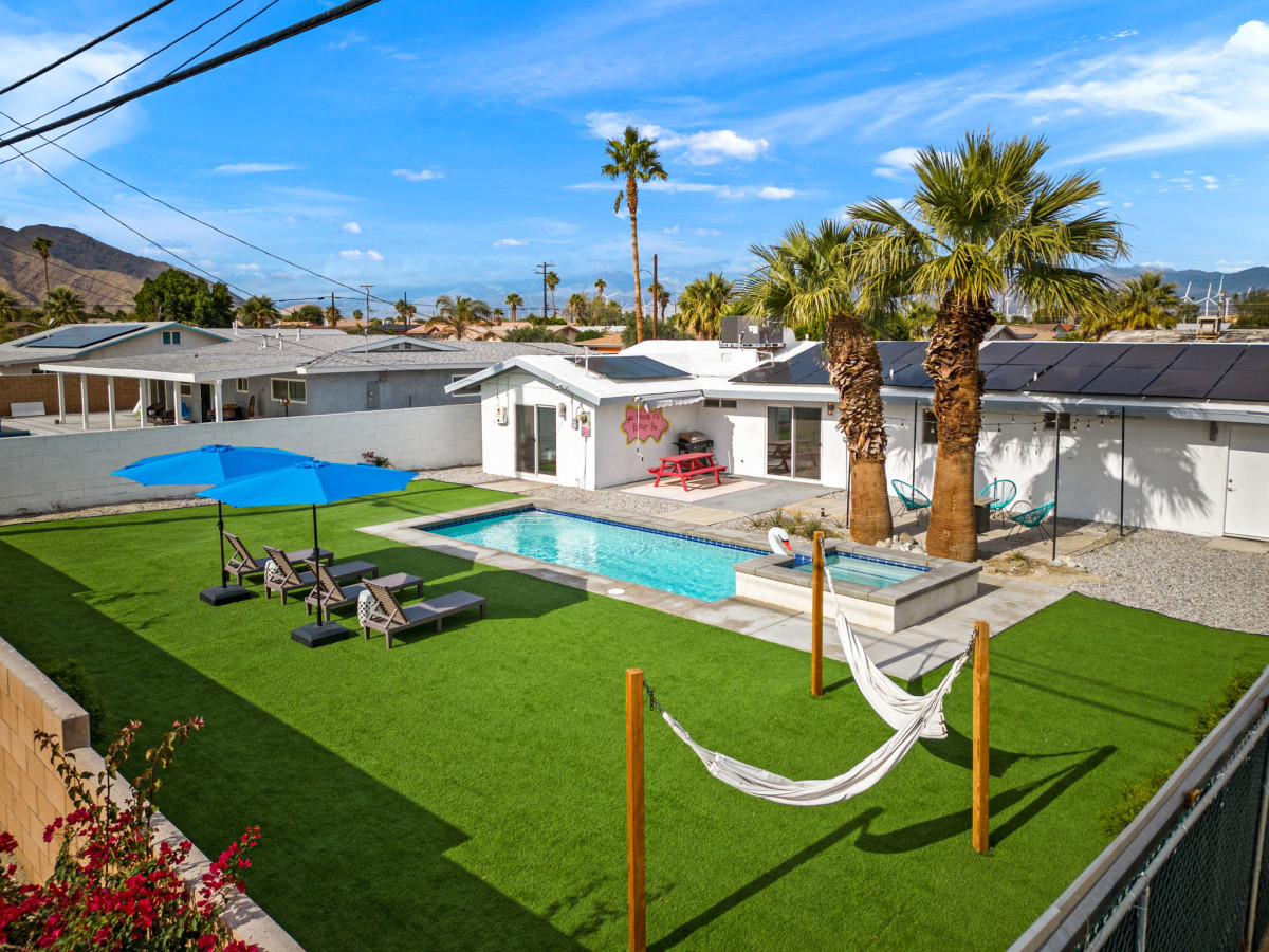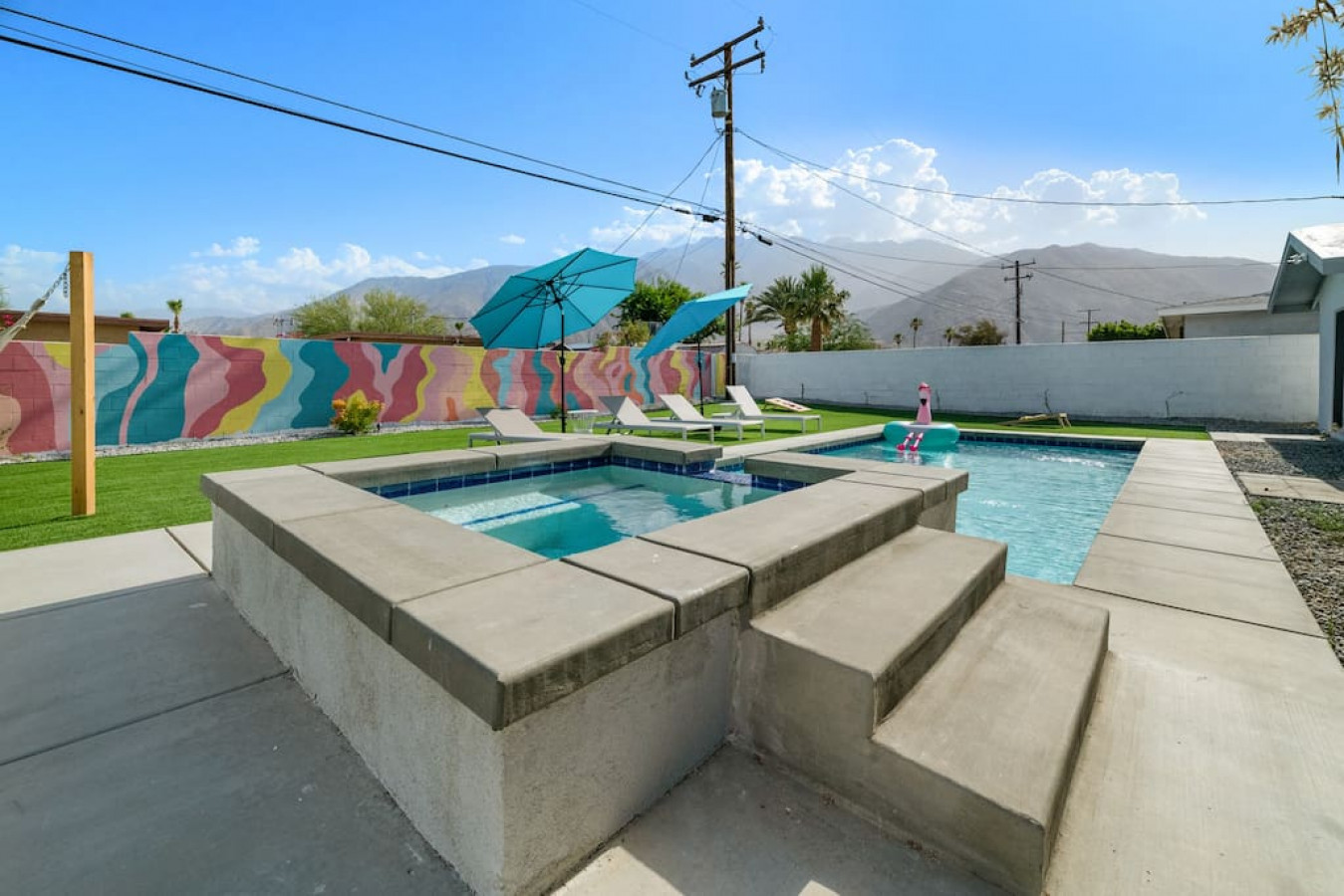 Where tranquility meets epic mountain views! Whether it's a bachelorette bash, a birthday celebration, or a pet-friendly retreat, our paradise has it all. Relax in style with stunning views of the San Jacinto from your heated saltwater pool, hot tub, or hammock. Enjoy outdoor dining, a cozy fire pit, and a fully equipped kitchen with complimentary coffee. With an IG-worthy mural, & just mins from Downtown Palm Springs, the Aerial Tramway, and the airport, your perfect getaway awaits!