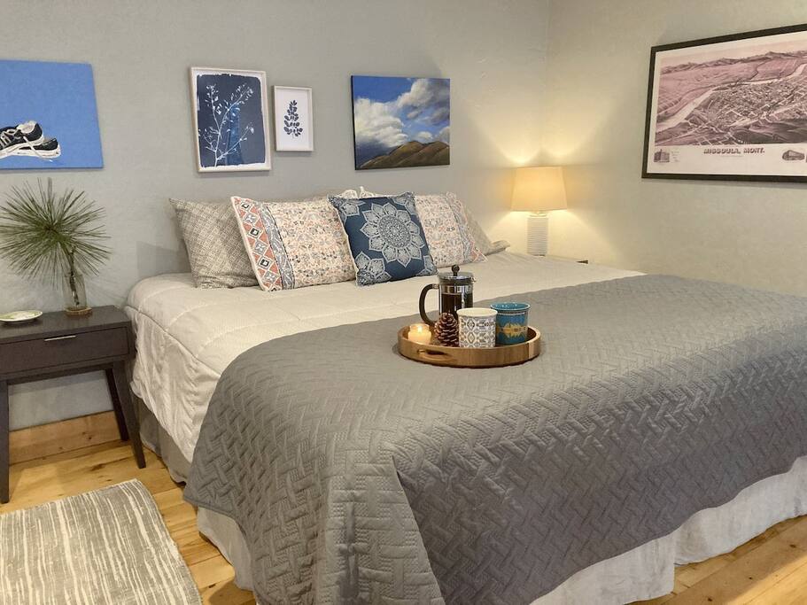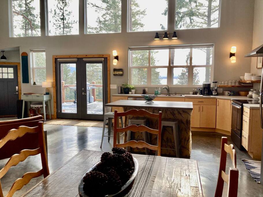 Situated on a two acres hillside among towering pines, with beautiful views of Flathead Lake, you’ll find Nature House… a comfortable, clean, contemporary retreat on Finley Point. Grab a Turkish spa towel and robe and breathe deep in the outdoor sauna. Grill up dinner on the deck or warm up by the fire table and listen to the coyotes howl in the distance. Watch the deer, turkeys, and occasional bear. Look up and see osprey, hawks, and eagles flying and calling overhead. All while gazing out over the beautiful, blue waters of famed Flathead Lake, the largest freshwater lake West of the Mississippi.