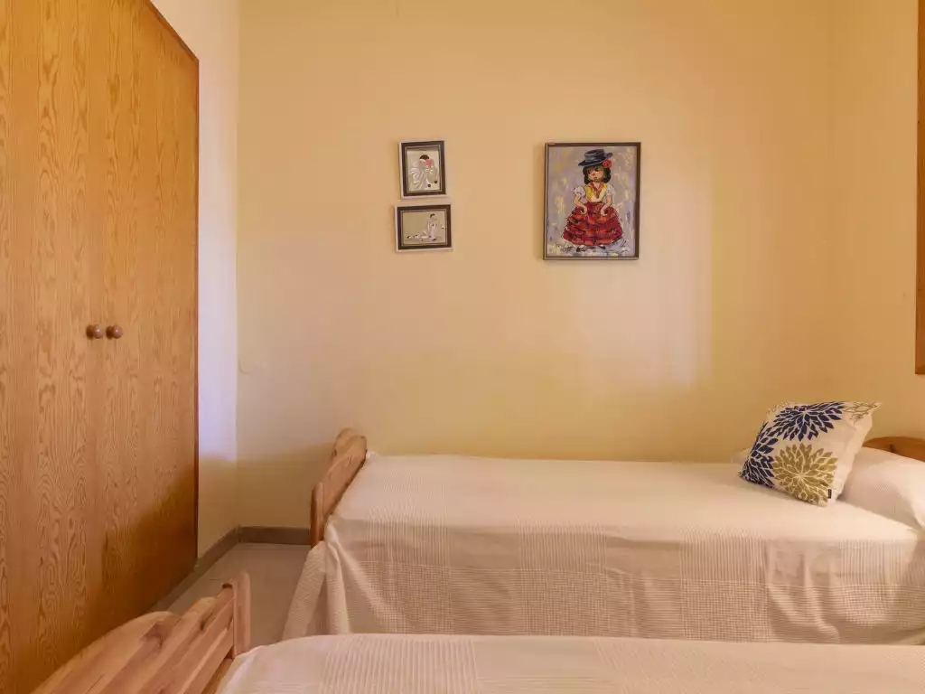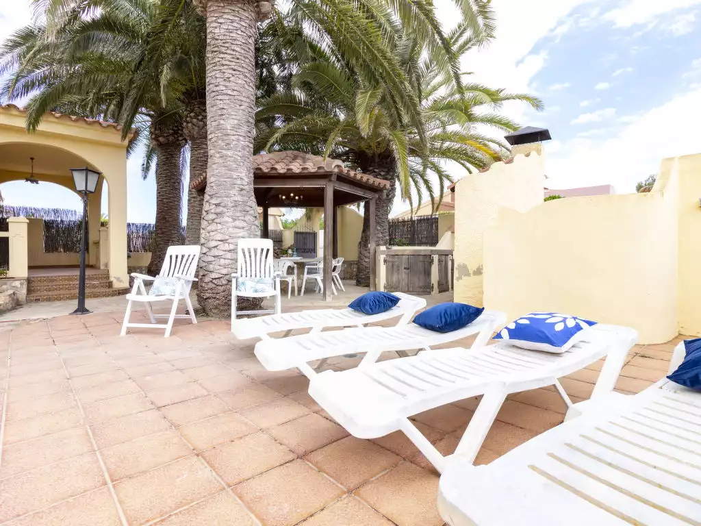 Urb. Riumar 8 km from Deltebre: Beautiful, comfortable house "Nellyana", 2 storeys. In a quiet, sunny position residential area (villas), 200 m from the sea, 200 m from the beach. Private: property 280 m2 (fenced), swimming pool angular (8 x 3 m, seasonal availability: 01.Jan. - 31.Dec.) with internal staircase. Outdoor shower, terrace (20 m2), garden furniture, barbecue, parking on the premises. Grocery 200 m, supermarket 8 km, restaurant, bar 200 m, bus stop "Riumar" 100 m, railway station "Aldea- Amposta" 25 km. Groups of teenagers on request only."Nellyana", 4-room house 120 m2, on the ground floor. Comfortable and cosy furnishings: living/dining room with open-hearth fireplace and satellite TV. 2 rooms, each room with 2 beds. 2 rooms, each room with 1 french bed. Open kitchen (4 hot plates, oven, toaster, microwave) with dining table. Bath/WC, shower/WC. Air-conditioning, forced-air heating. Terrace 20 m2. Terrace furniture, barbecue, deck chairs. View of the swimming pool. Facilities: washing machine, safe. Internet (WiFi, free). Parking (fenced 2 cars). Suitable for families. Maximum 2 pets/ dogs allowed. HUTTE001090 // Reg. Nr.: ESFCTU0000430190003614430000000000000000HUTTE-0010901