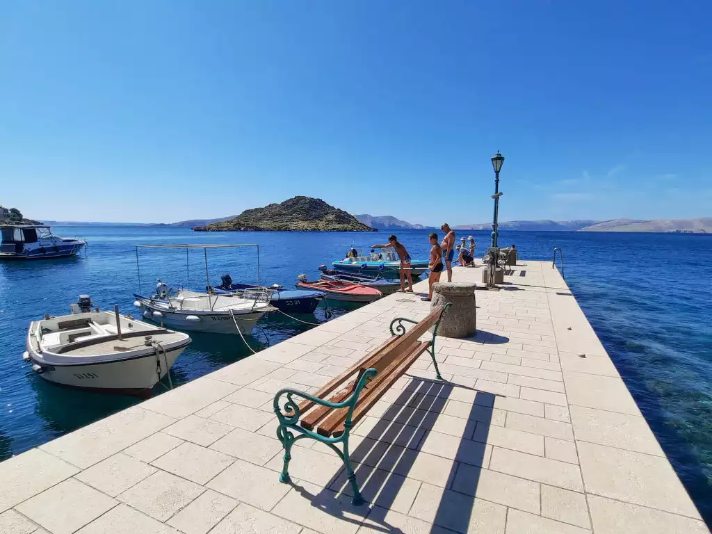 Semi-detached house "Nena". 100 m from the centre of Sveti Juraj, on a slope, 100 m from the sea, 200 m from the beach. In the house: internet access. Parking (for 2 cars) at the house on the premises. Shop 150 m, supermarket 9 km, restaurant 100 m, bus stop 400 m, pebble beach 200 m.2-room apartment 55 m2 on 1st floor. 2 rooms, each room with 1 double bed (2 x 90 cm, length 200 cm). Exit to the balcony. Dining room with satellite TV and air conditioning. Open kitchen (2 hot plates, oven, 2 gas rings, toaster, kettle, freezer, electric coffee machine). Bath/WC. Air-conditioning (extra). No heating option. Balcony 14 m2, terrace 12 m2. Terrace furniture. View of the sea. Facilities: Internet (WiFi, free).