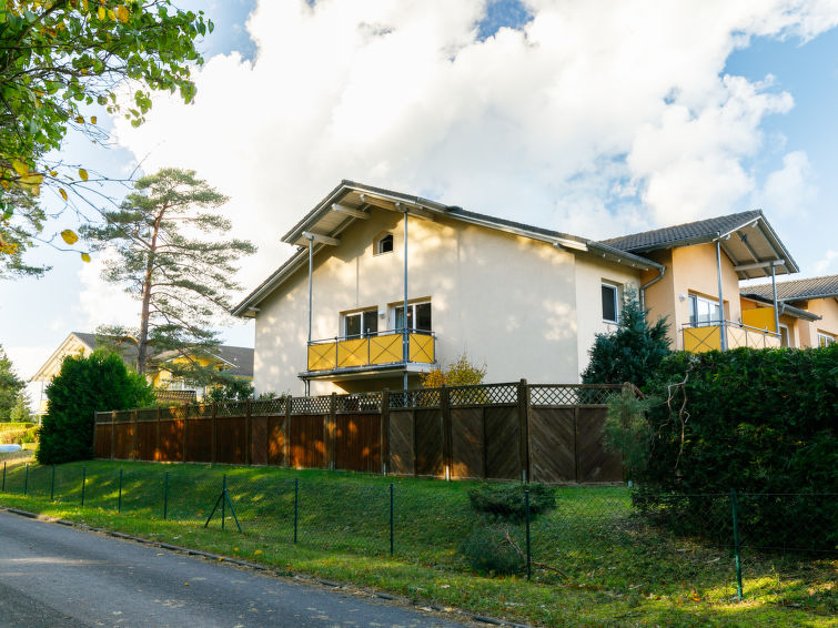 Apartment block. In the resort 800 m from the centre of Koserow, from the sea, 700 m from the beach. In the house: central heating system. Parking on the premises. Supermarket 850 m, restaurant 300 m, bakery 1.3 km, café 1.3 km, bus stop 950 m, railway station 1.4 km, sandy beach 700 m, thermal baths "Bernsteintherme" 9 km. Golf course (18 hole) 18 km, surf school 9 km, minigolf 900 m."Neptun", 2-room apartment 67 m2, on the ground floor. Cosy furnishings: living/dining room with 1 double sofabed and satellite TV (flat screen), radio. Exit to the terrace. 1 room with 1 double bed. Kitchenette (oven, dishwasher, 4 ceramic glass hob hotplates, toaster, kettle, microwave, electric coffee machine). Shower/WC. Terrace. Terrace furniture, barbecue (portable). Facilities: washing machine (extra). Children's high chair, baby cot. Internet (WiFi, free). Please note: non-smokers only. Maximum 1 pet/ dog allowed. Smoke alarm.