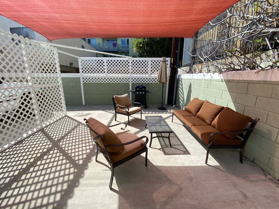 OUTDOOR SPACE: PRIVATE Fenced Patio Deck with Outdoor Seating/Furniture and BBQ Grill