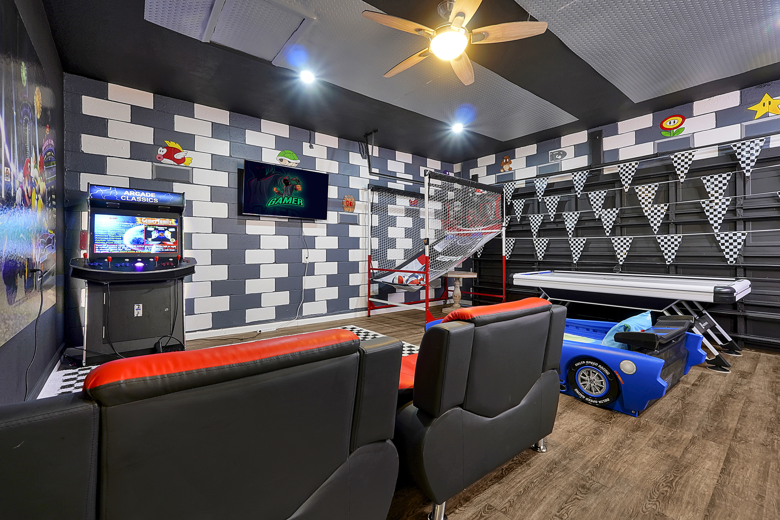 Game Room - Mario Themed with Arcade Classics, TV, Basketball and Ice Hockey Table
