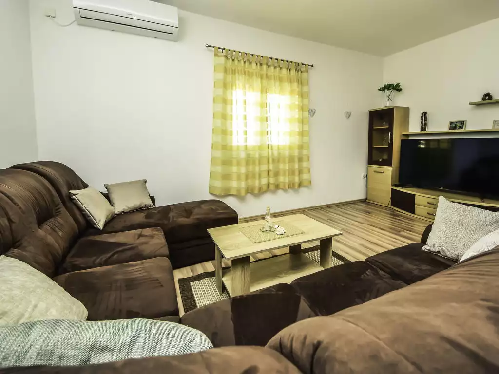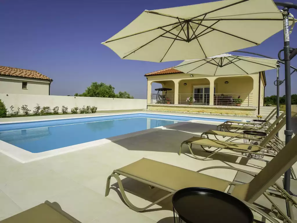 Visočane 12 km from Ražanac: Single-family house "Nisa". 500 m from the centre of Visočane, 19 km from the centre of Zadar, in a quiet, sunny position, 6.5 km from the sea. Private: property 1'000 m2, swimming pool angular (10 x 5 m, depth 140 cm, seasonal availability: 01.May. - 01.Oct.) with internal staircase. Outdoor shower, barbecue, pool maintenance by the owner/gardener. In the house: internet access, washing machine. Parking (for 2 cars) at the house on the premises. Shop 500 m, restaurant 11 km, bus stop 6.1 km, pebble beach 6.5 km. Please note: airfield 19 km from the property.4-room house 100 m2, south facing position. Living/dining room 46 m2 with satellite TV (flat screen), air conditioning. Exit to the terrace. 1 room with 1 french bed (180 cm, length 200 cm). 1 room with 1 french bed (160 cm, length 200 cm). 1 room with 2 beds (90 cm, length 200 cm). Open kitchen (oven, dishwasher, 4 ceramic glass hob hotplates, microwave, freezer, electric coffee machine). Bath/WC, shower/WC. No heating option. Terrace 34 m2, roofed. Terrace furniture, deck chairs. View of the swimming pool. Facilities: safe, baby cot. Internet (WiFi, free).