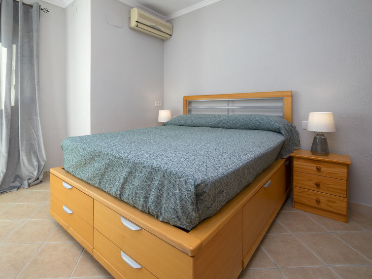 Beautiful villa "Noosa". 2 km from the centre of Calpe, in a quiet, sunny position residential area (villas), traffic calmed area, 2 km from the sea, 2 km from the beach. Private: property 823 m2 (fenced), swimming pool (10 x 5 m, seasonal availability: 01.Jan. - 31.Dec.) with internal staircase. Outdoor shower, pool house with fridge, terrace, barbecue. In the house: storage room for bicycles. Grocery 1.8 km, supermarket 1.8 km, restaurant 2.5 km, bus stop "Parada Bus" 600 m, railway station "Estacion Tren Calp" 600 m, sandy beach "Playa Arenal" 2.6 km. Sports harbour 5 km, marina 5 km, golf course (9 hole) 11 km. Nearby attractions: Aqualandia, Mundomar, Terra Mítica, Terra Natura, Benidorm Palace (Benidorm), Les Fonts de l'Algar, Castillo de Guadalest. The owner does not accept any youth groups."Noosa", 6-room villa 341 m2. Object suitable for 7 adults + 4 children. Spacious and bright, comfortable and beautiful furnishings: open living/dining room with digital TV, air conditioning, fan and forced-air heating. Exit to the terrace, to the veranda, to the swimming pool. 1 room with 1 double bed (2 x 90 cm, length 200 cm), bath/shower/bidet/WC, air conditioning, fan and forced-air heating. Open kitchen (dishwasher, 4 ceramic glass hob hotplates, toaster, kettle, microwave, electric coffee machine). Sep. WC. Upper floor: with 1 double bed (2 x 80 cm, length 190 cm), air conditioning, fan and forced-air heating. 1 room with 1 french bed (1 x 180 cm, length 200 cm), shower/WC, air conditioning, fan and forced-air heating. Exit to the terrace. 1 room with 2 x 2 bunk beds (80 cm, length 200 cm), shower/WC, double hand-basin, air conditioning, fan and forced-air heating. 1 room with 1 bed (90 cm, length 200 cm), air conditioning, fan and forced-air heating. Exit to the terrace. Large terrace. Terrace furniture, deck chairs. Beautiful distant view of the sea and the town. Facilities: washing machine, iron, children's high chair, baby cot, hair dryer. Internet (WiFi, free). Garage (2 cars). Please note: suitable for families. Non-smoking house. VT-499902-A // Reg. Nr.: ESFCTU00000302900050638800000000000000000VT-499902-A4
