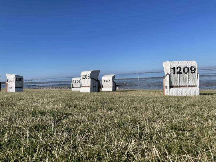 Holiday village "Dagebüll". In the district of Dagebüll-Hafen 2.5 km from the centre of Dagebüll, in a quiet position, 150 m from the sea, 500 m from the beach. In the complex: restaurant, shopping facilities, boutique, central heating system, washing machine (extra), tumble dryer (extra). Parking at the house. Supermarket 10 km, shopping centre 8 km, restaurant, bakery, café 100 m, bicycle rental, bus stop 500 m, railway station "Dagebüll-Mole" 150 m, ferry "Föhr/Amrum" 150 m, grass beach 500 m, indoor swimming pool 10 km. Golf course (18 hole) 25 km, tennis 13 km, riding stable 13 km. Please note: suitable for families."Norderoog", 3-room house 85 m2, on the ground floor. Comfortable and tasteful furnishings: living/dining room with Scandinavian wood stove and satellite TV (flat screen), radio and DVD. Exit to the terrace. 2 double bedrooms. Open kitchen (oven, dishwasher, 4 ceramic glass hob hotplates, electric coffee machine). Sep. WC, bath/shower/WC, Sauna. Terrace furniture. Facilities: Internet (WiFi, free). Please note: non-smoking house. Maximum 2 pets/ dogs allowed. Smoke alarm.